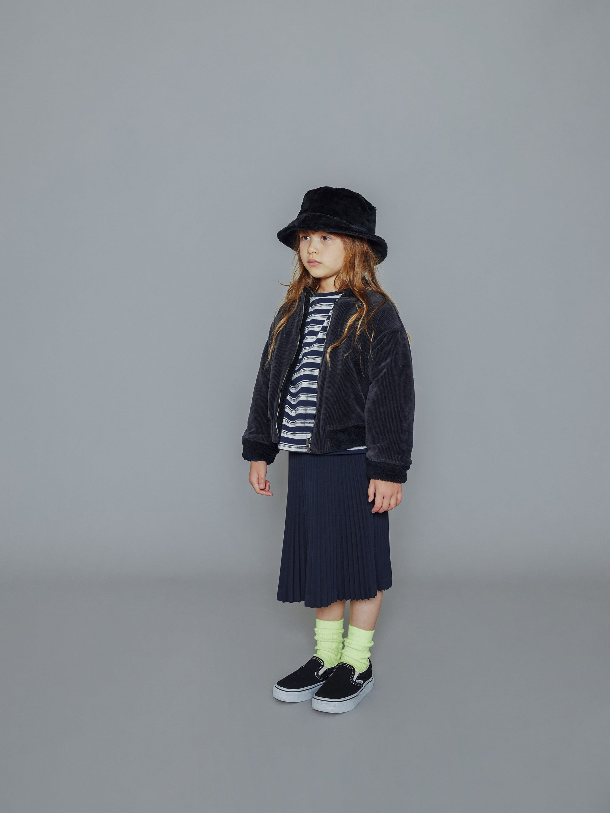 女童黑色灯芯绒渔夫帽