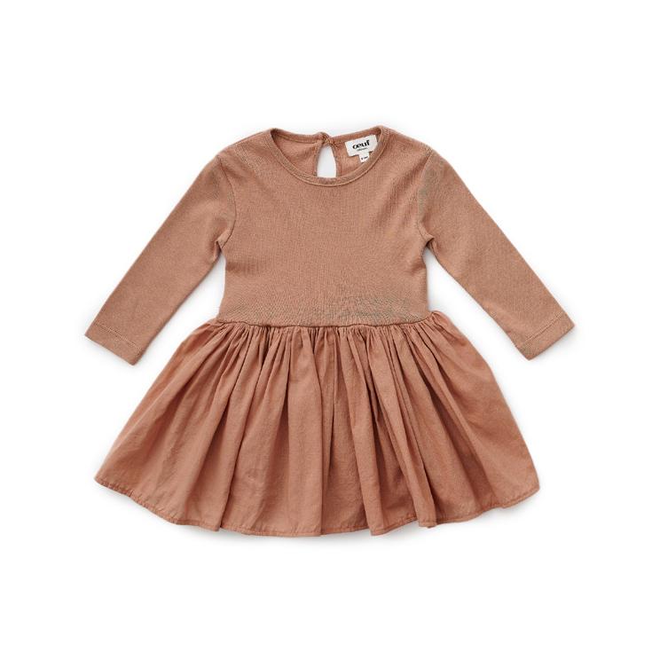 女童焦糖色棉连衣裙
