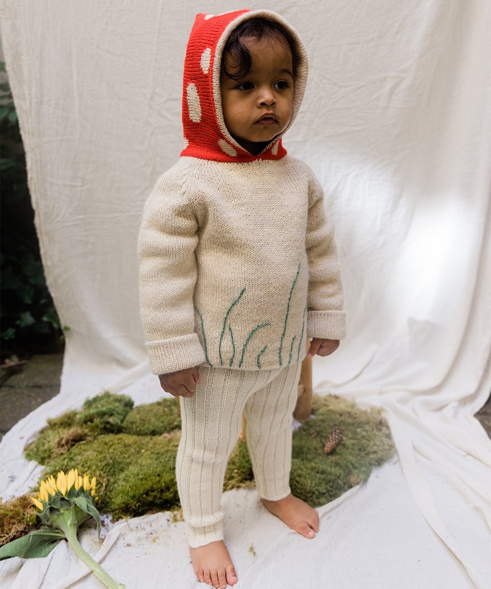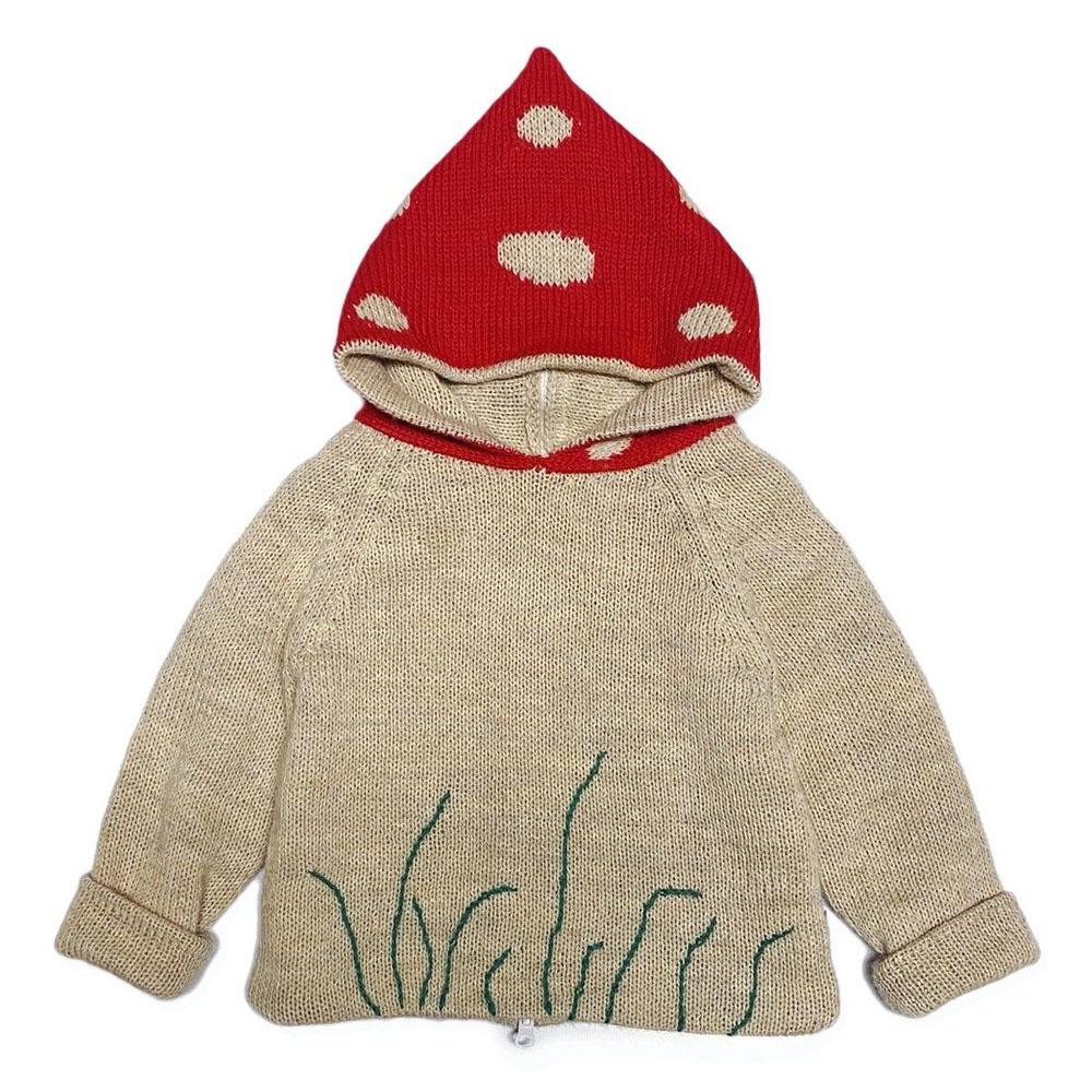 儿童米色连帽羊驼毛毛衣