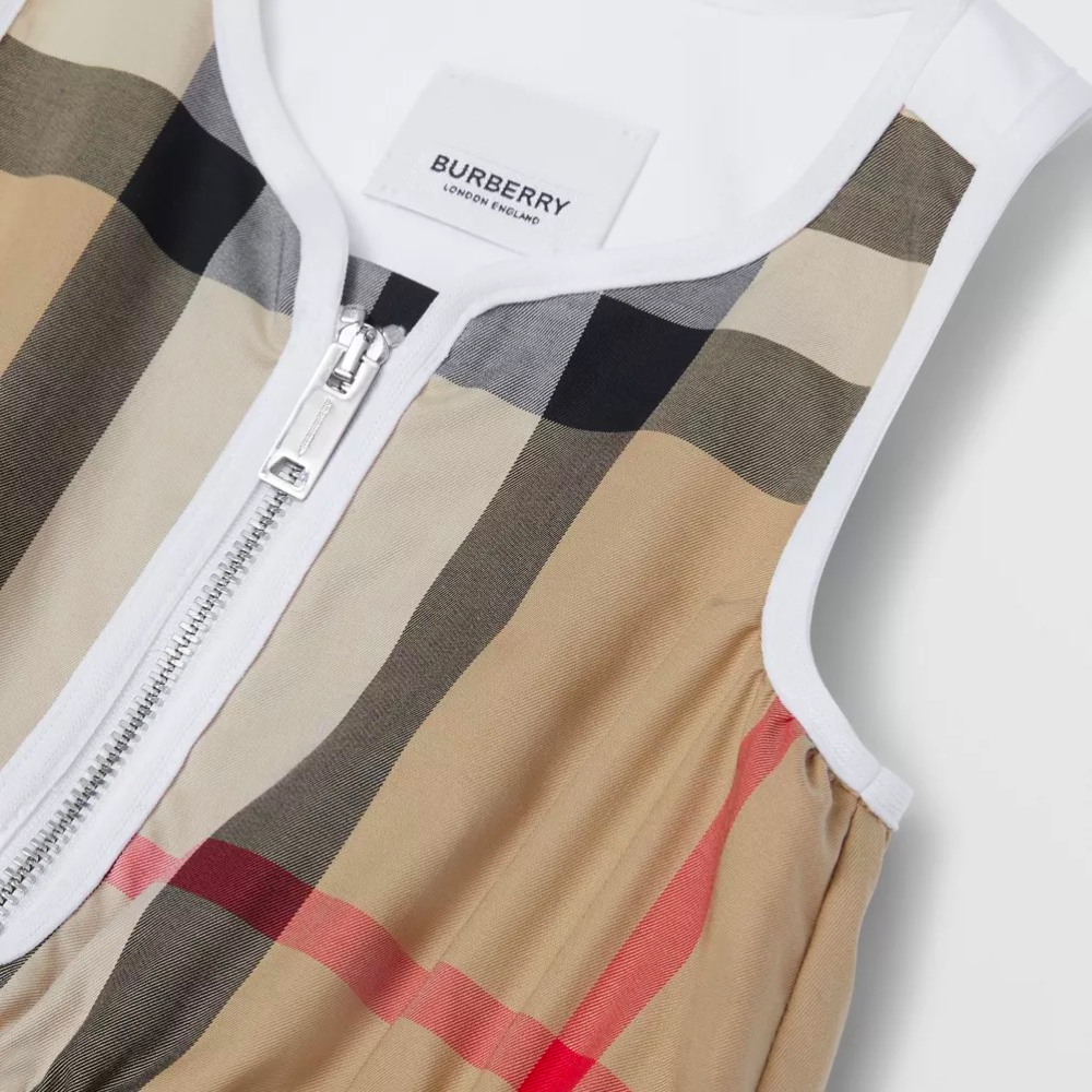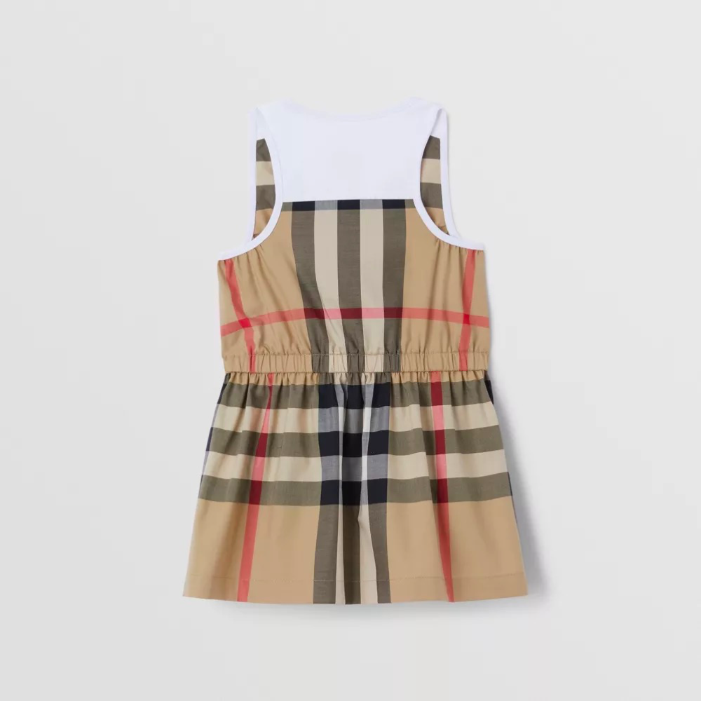 增加 女婴米色格子连衣裙 的数量