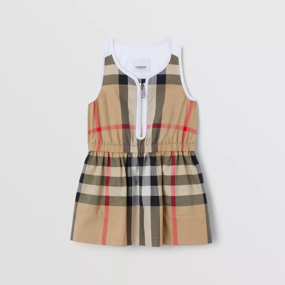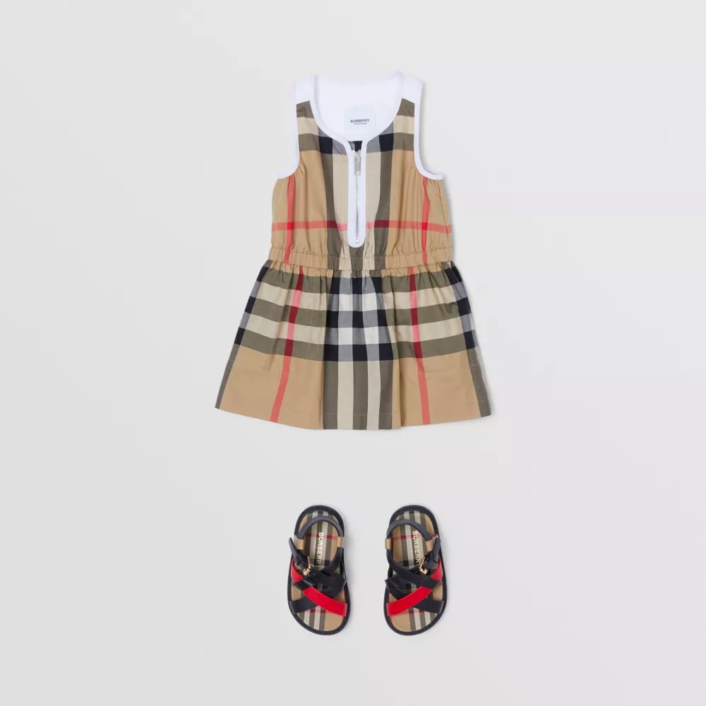 女婴米色格子连衣裙