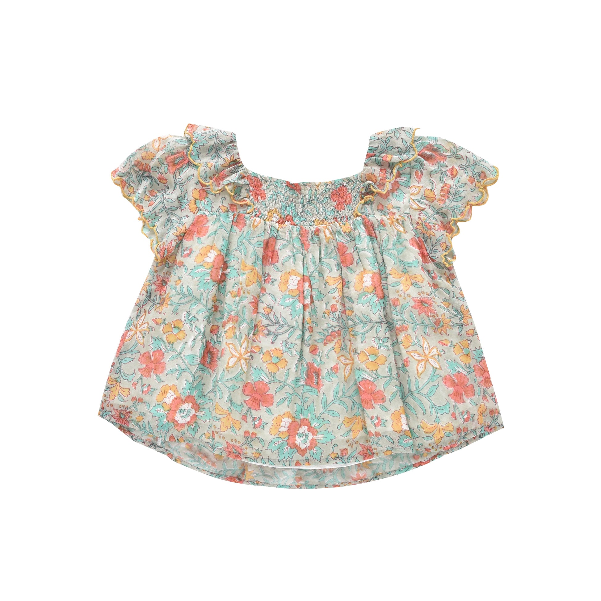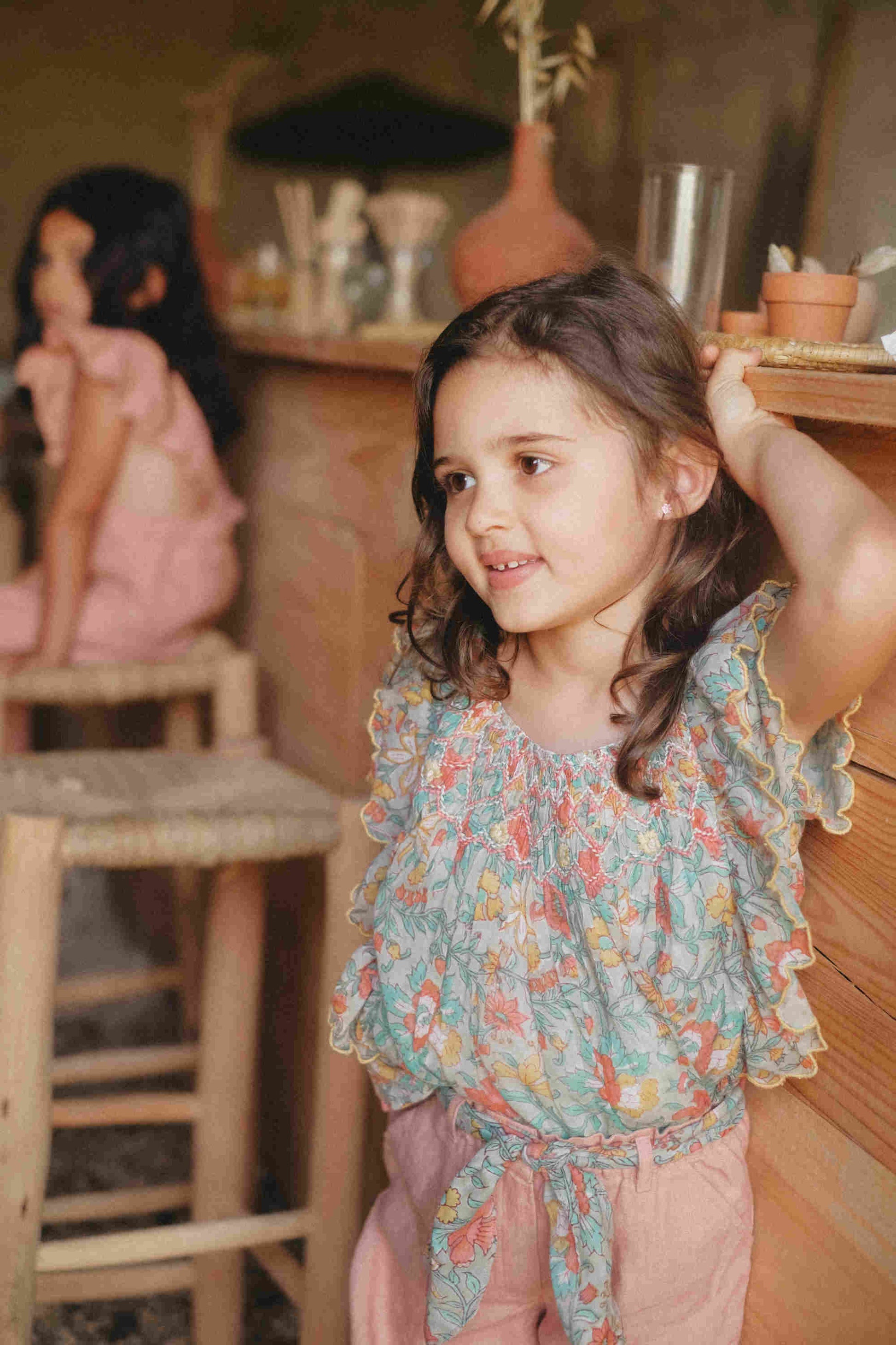 女童蓝色碎花棉上衣