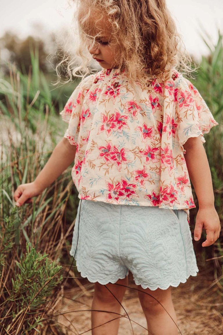 女童蓝色棉短裤
