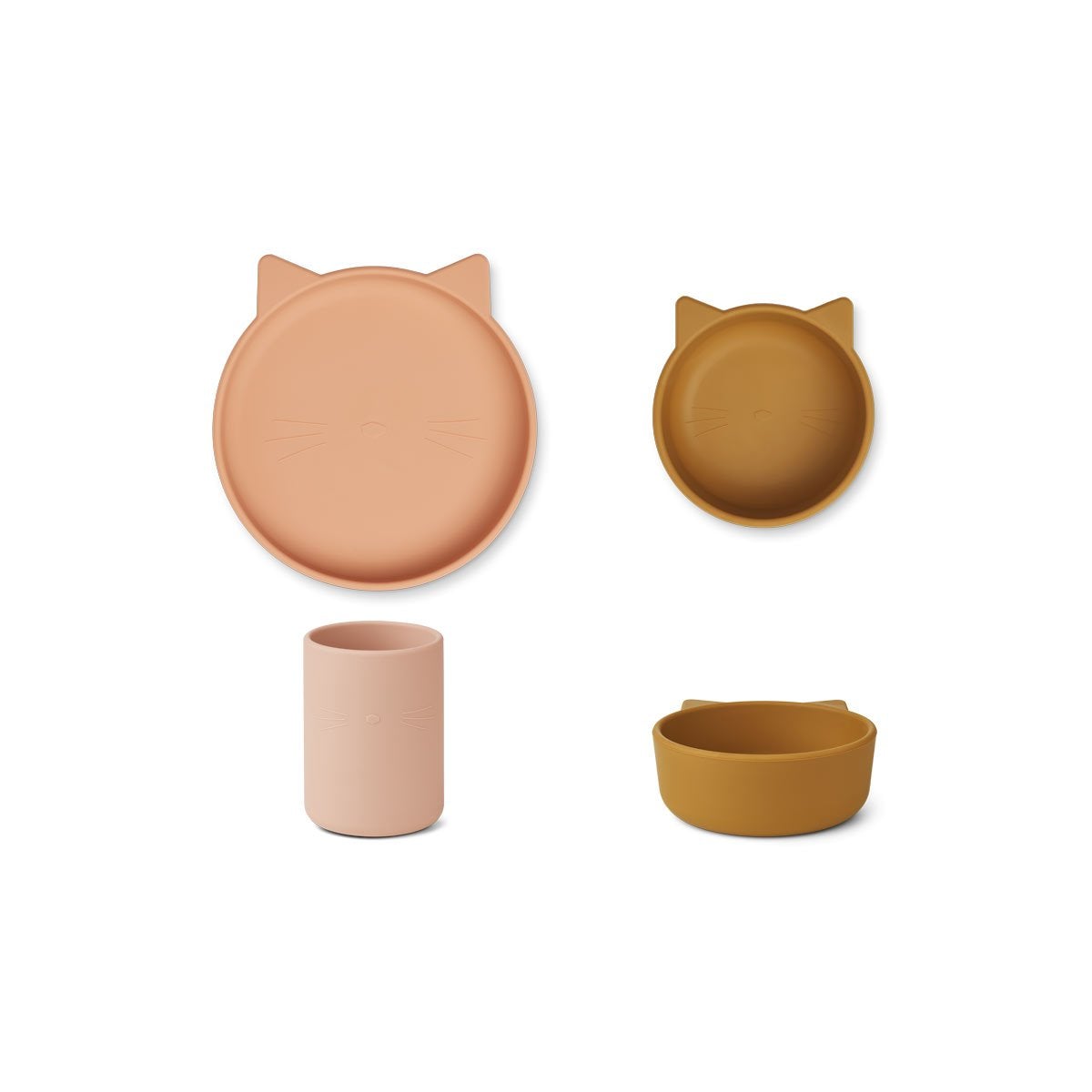 儿童玫瑰粉猫咪硅胶餐具(3件)