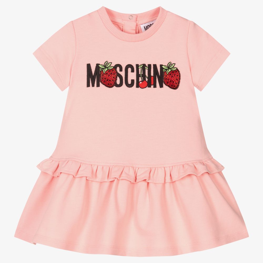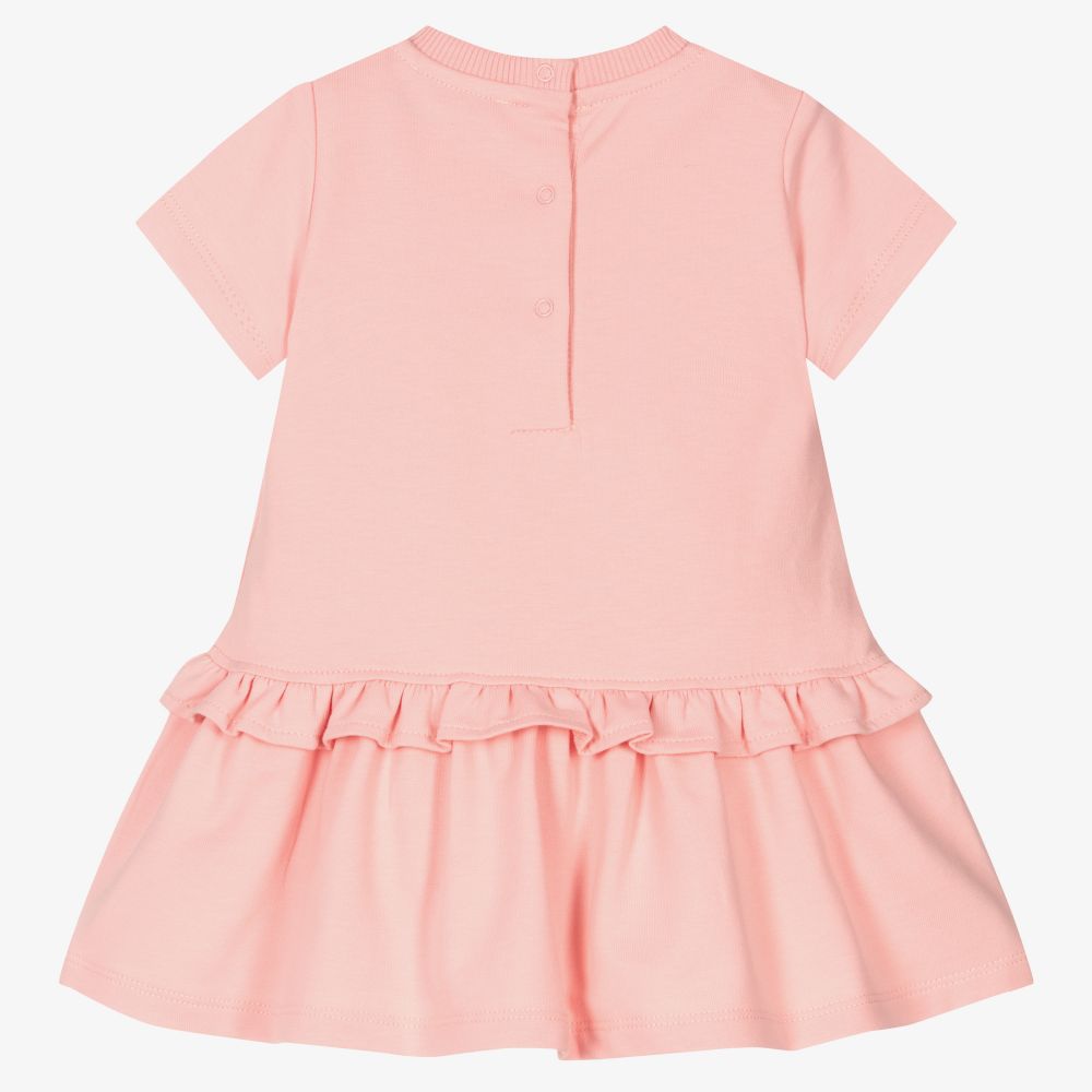 女婴粉色泰迪熊棉连衣裙