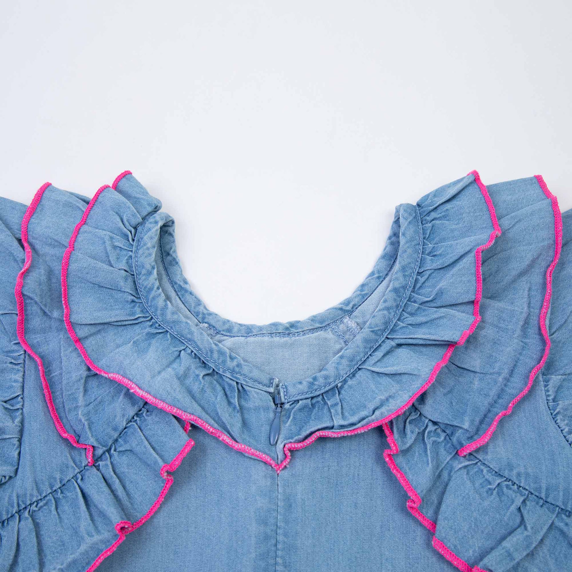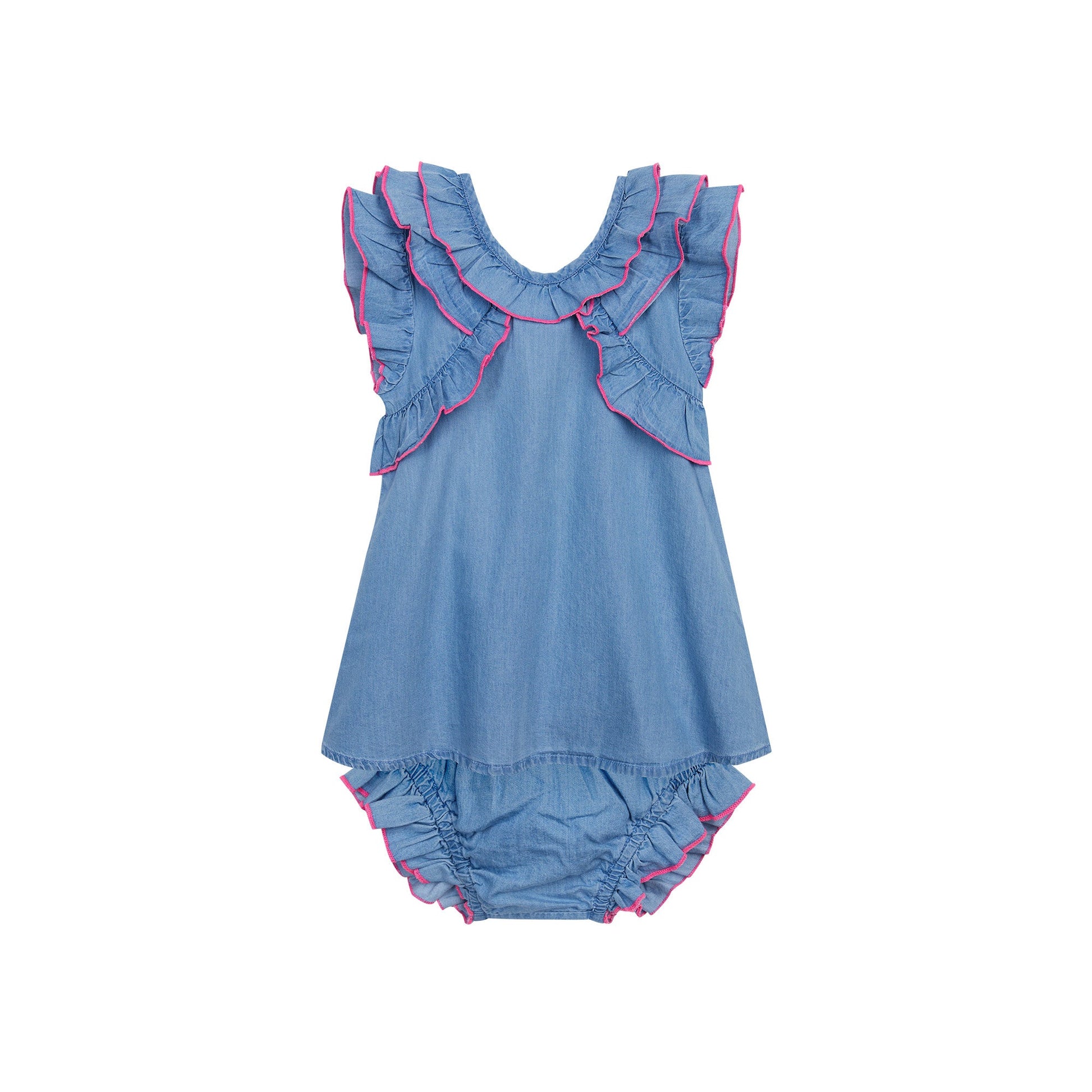 女婴蓝色牛仔连衣裙套装