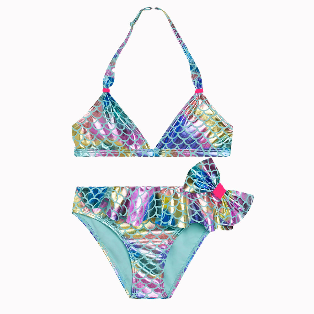 女童蓝色渐变分体泳装