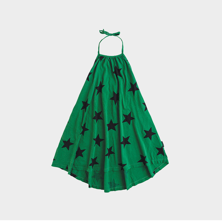 女童绿色星星棉连衣裙