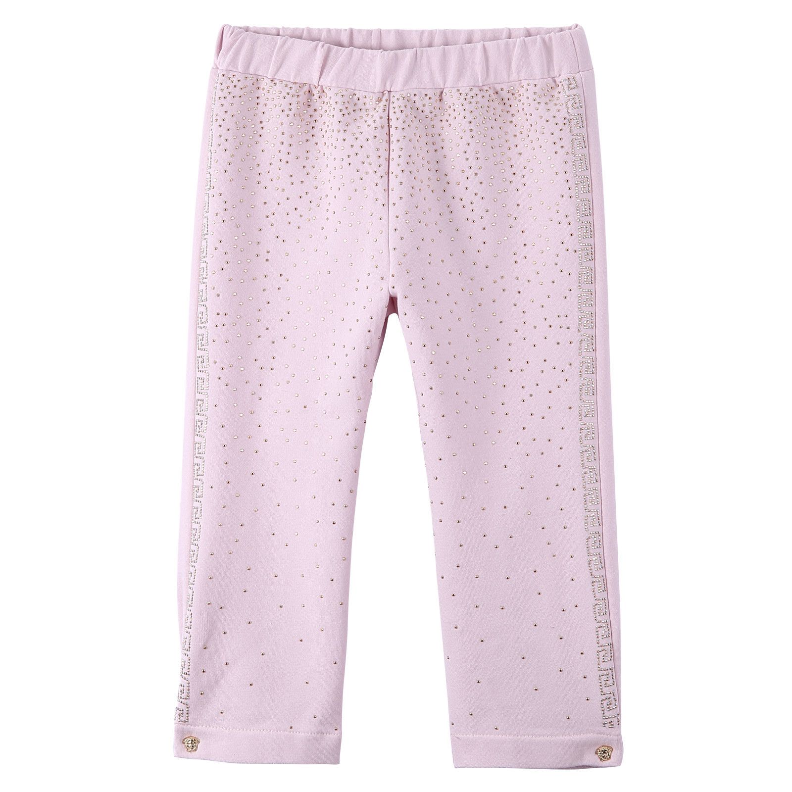 Baby Girls Pink Cotton Trousers With Gold Spot Trims