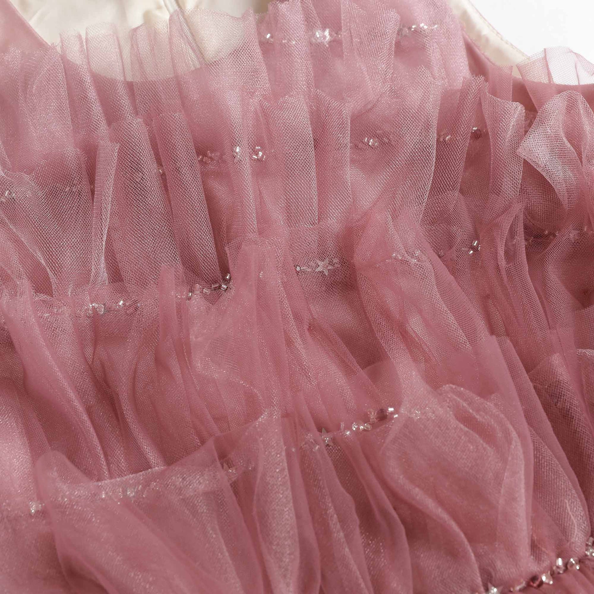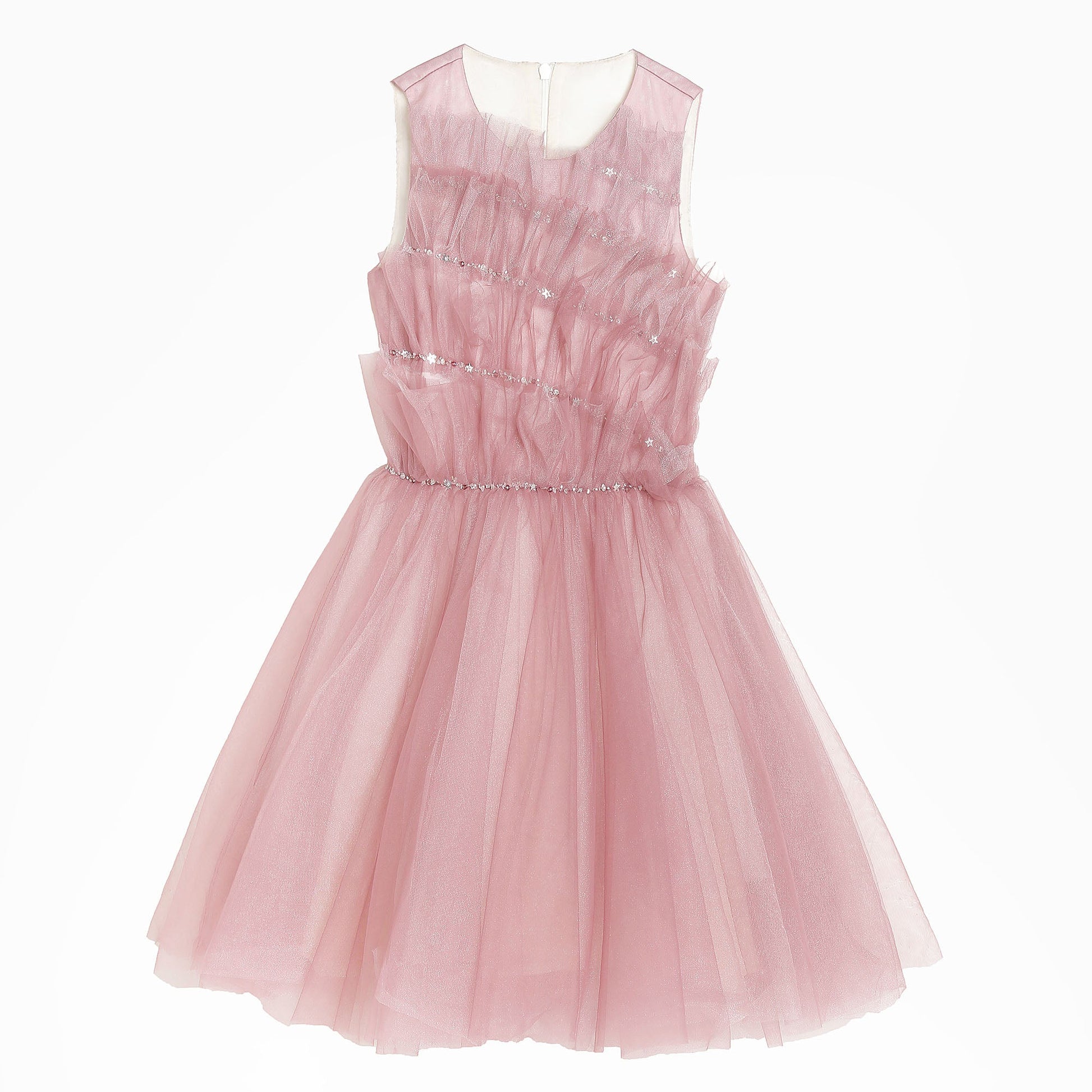 女童紫色立褶钉珠礼服裙