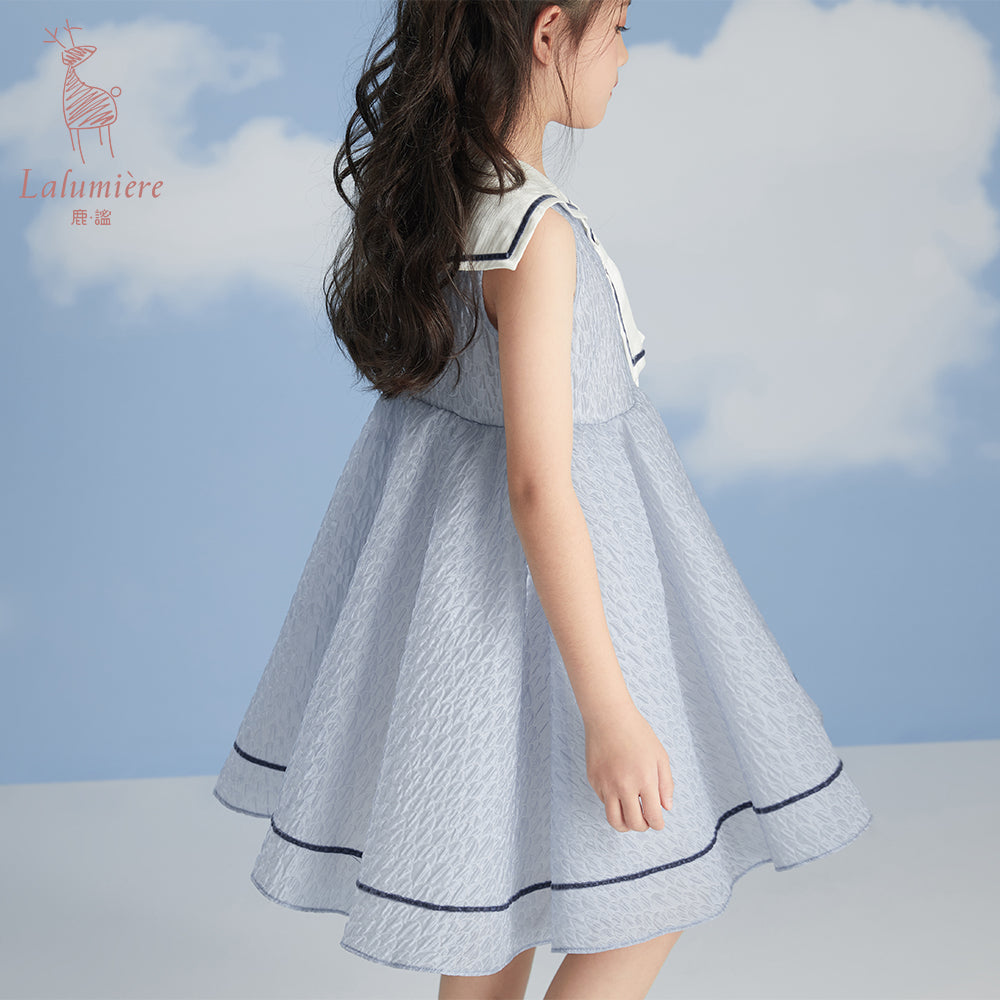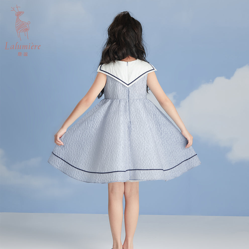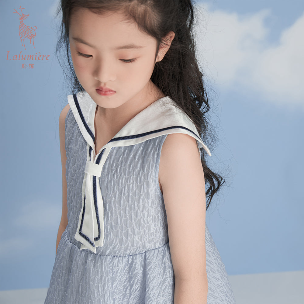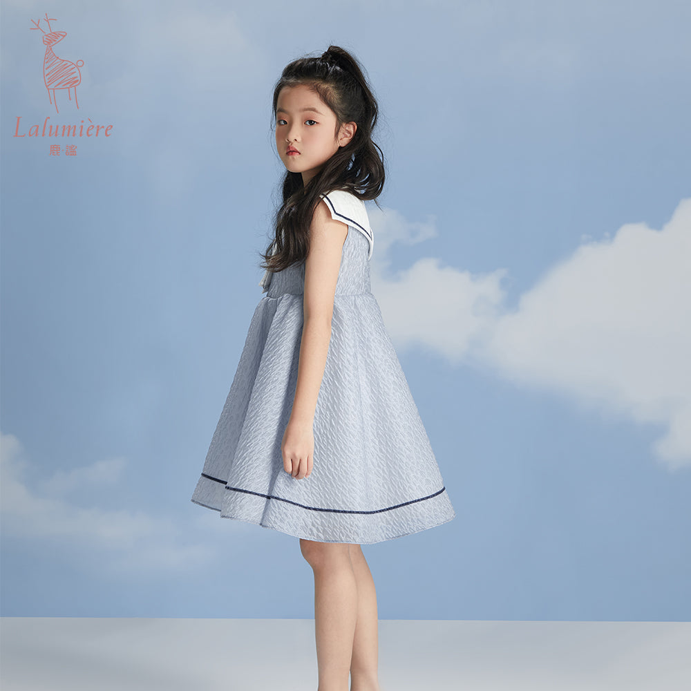 女童海军领蓝色水波纹小礼服