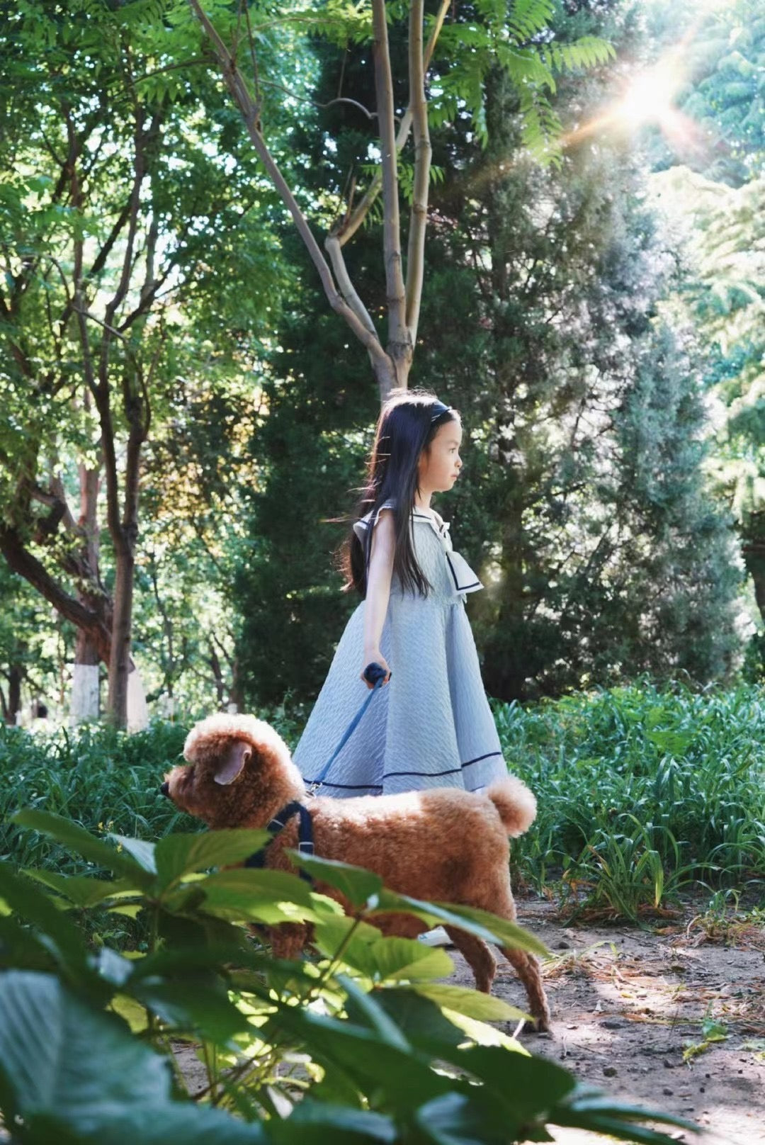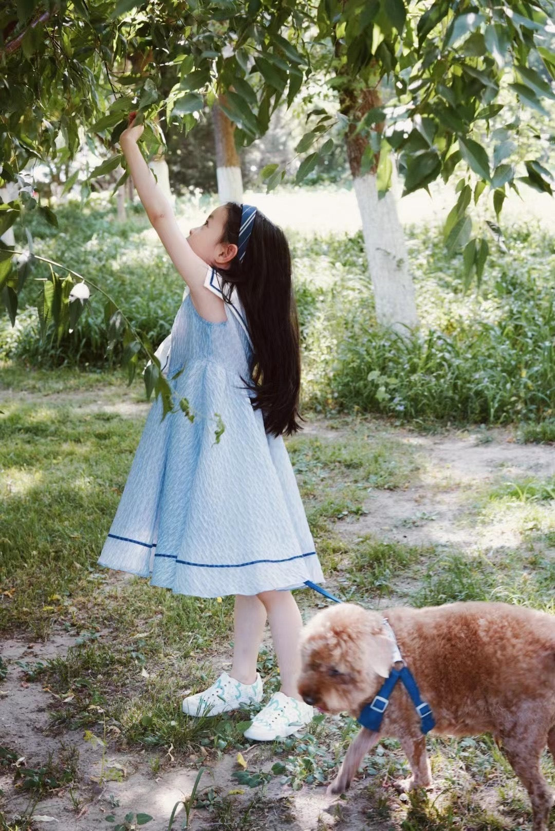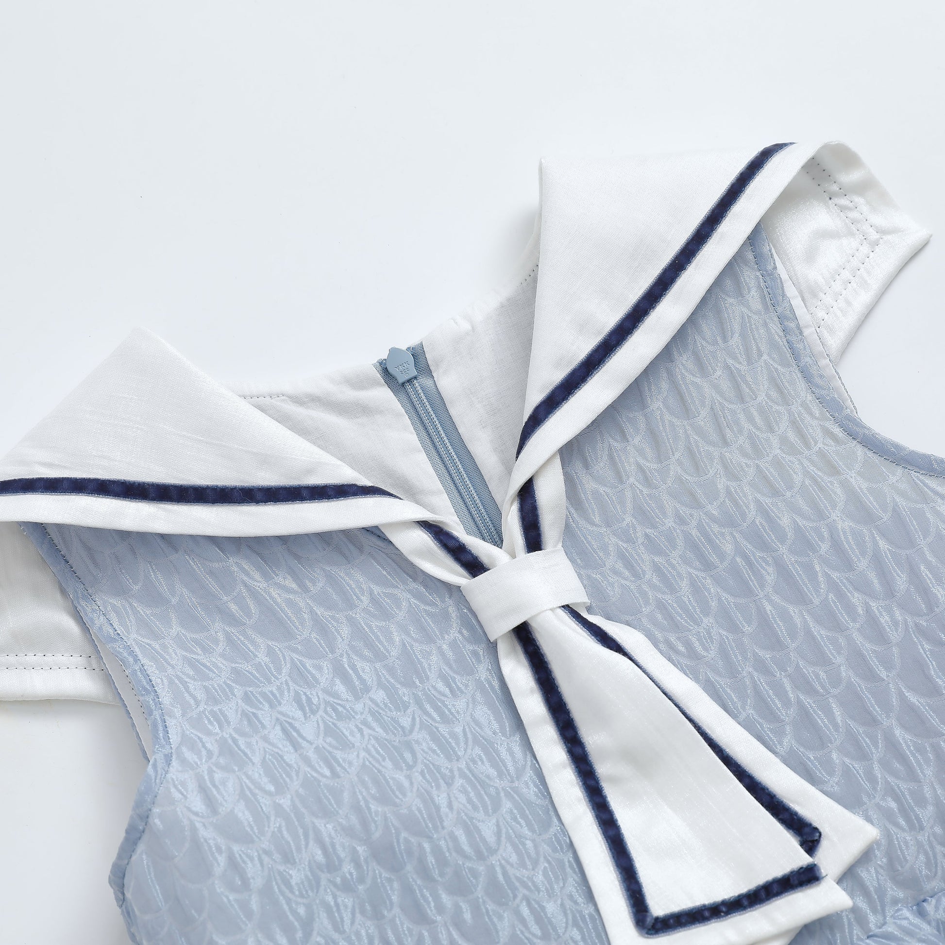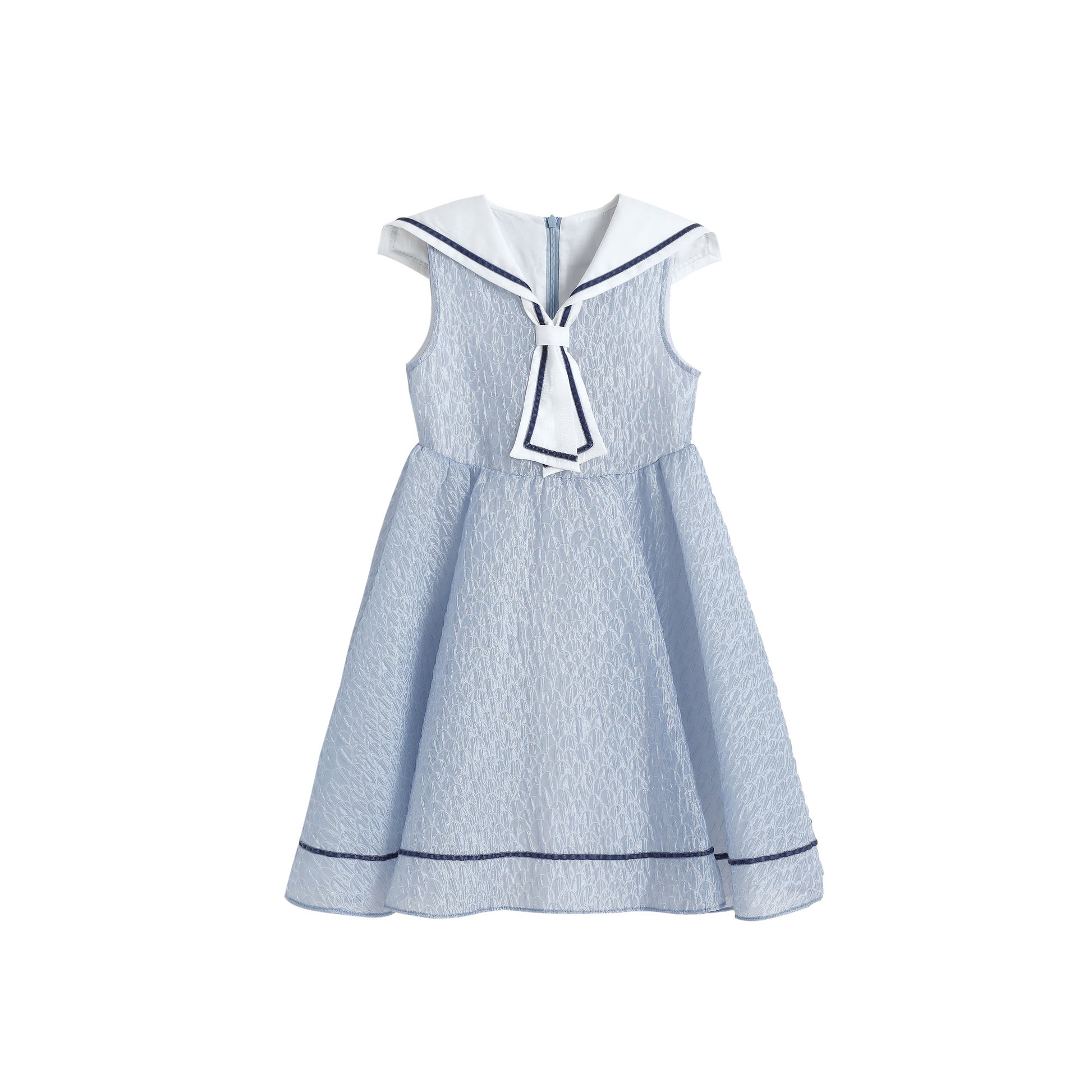 女童海军领蓝色水波纹小礼服