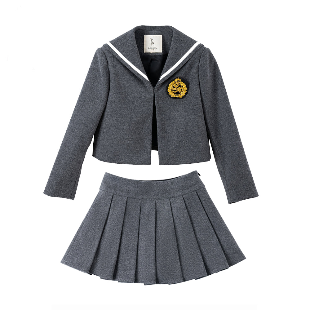 女童灰色毛呢两件套(外套+半裙)