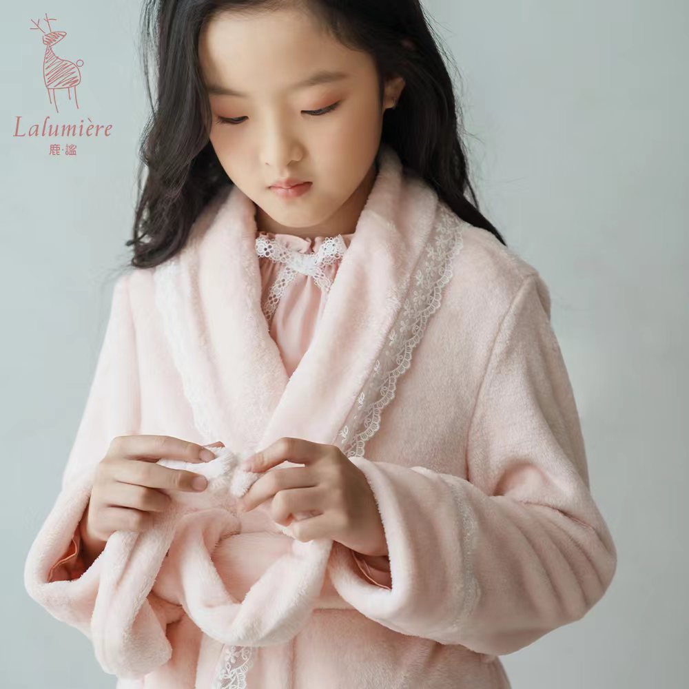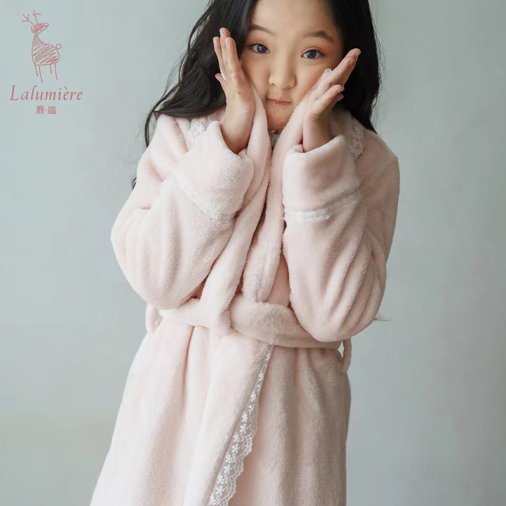 粉色珊瑚绒公主睡袍
