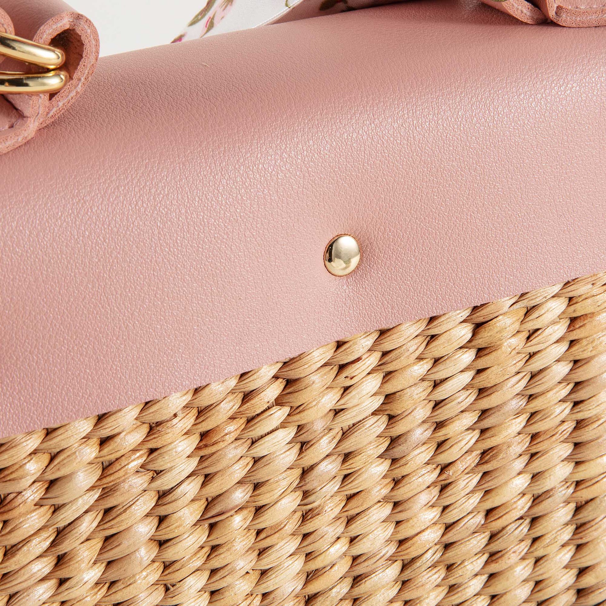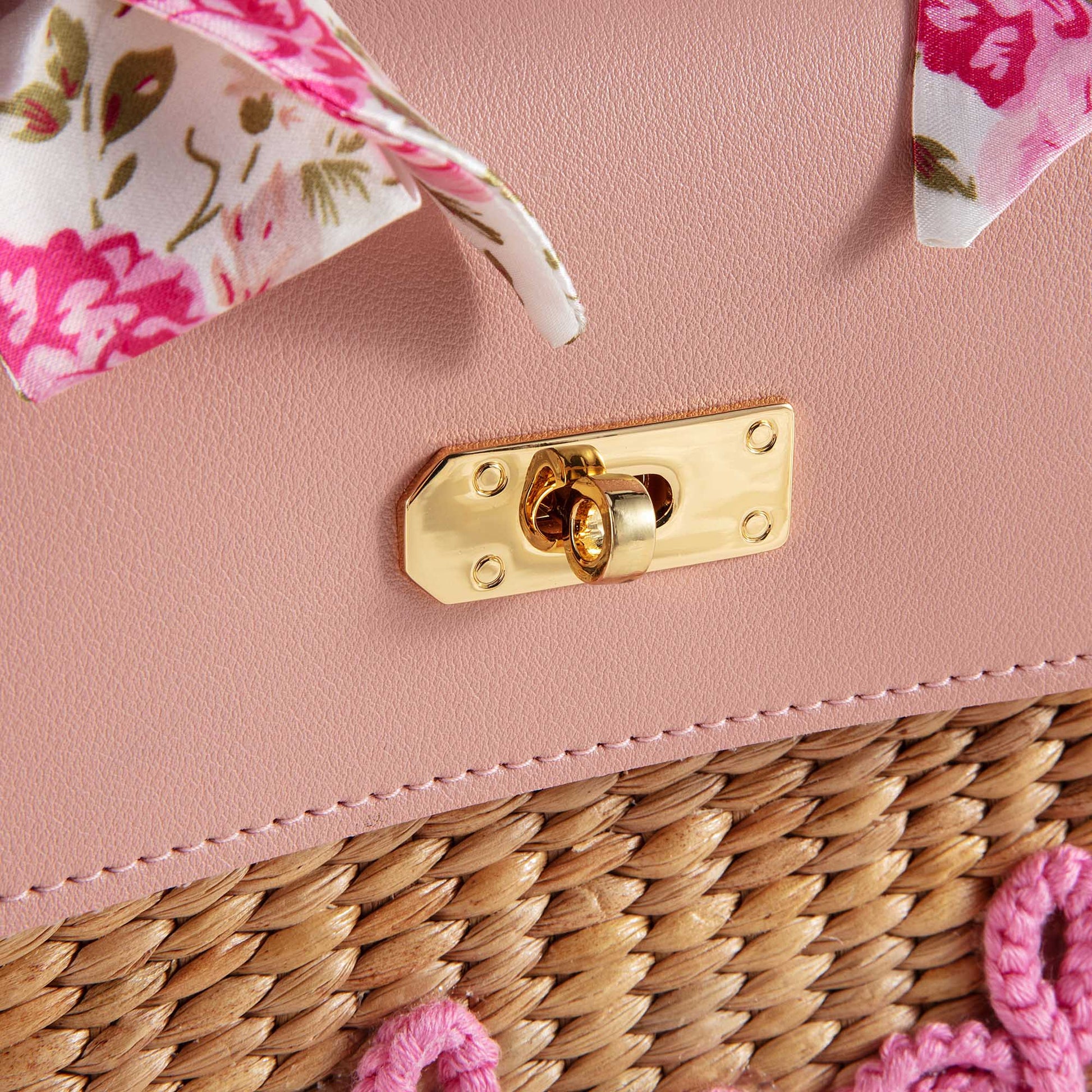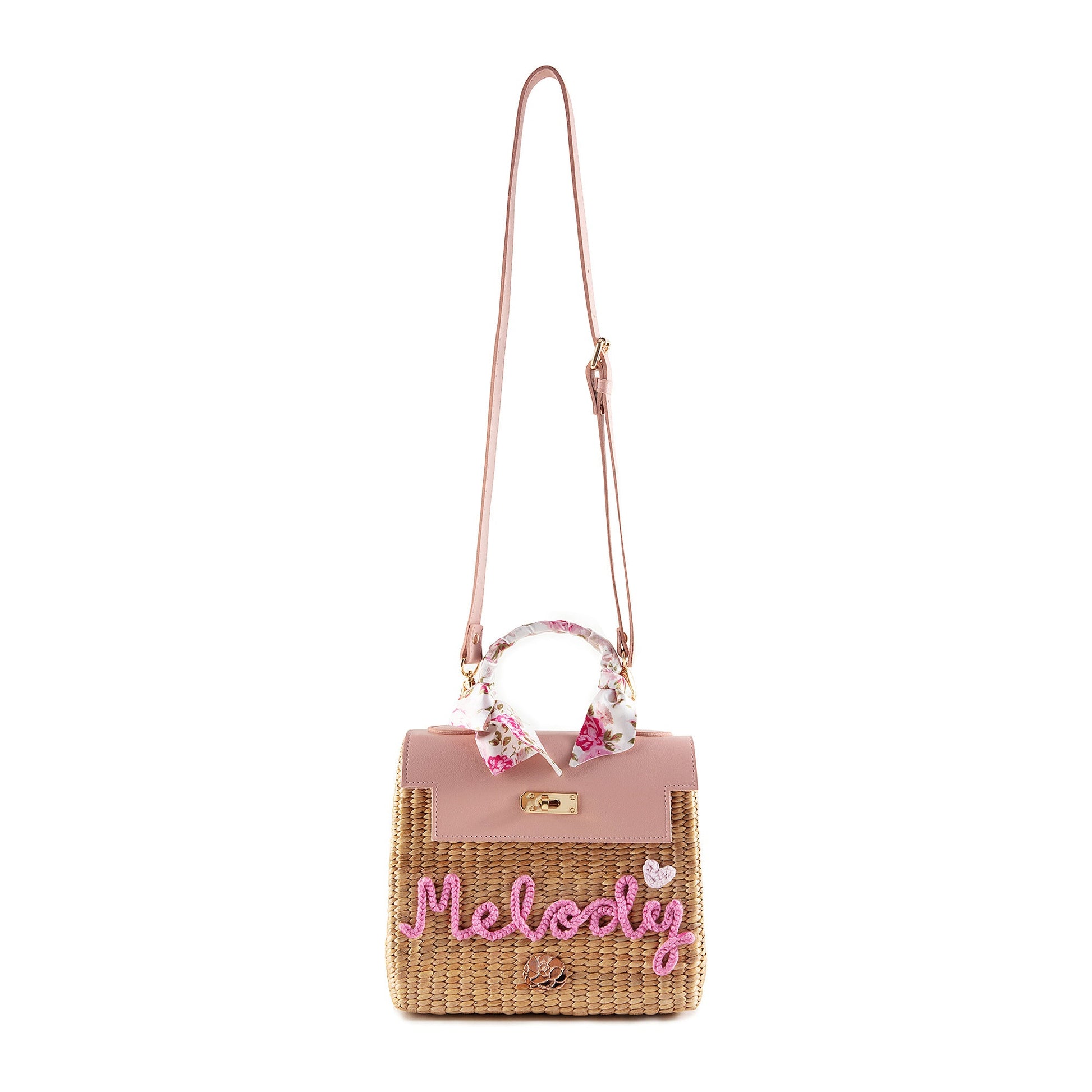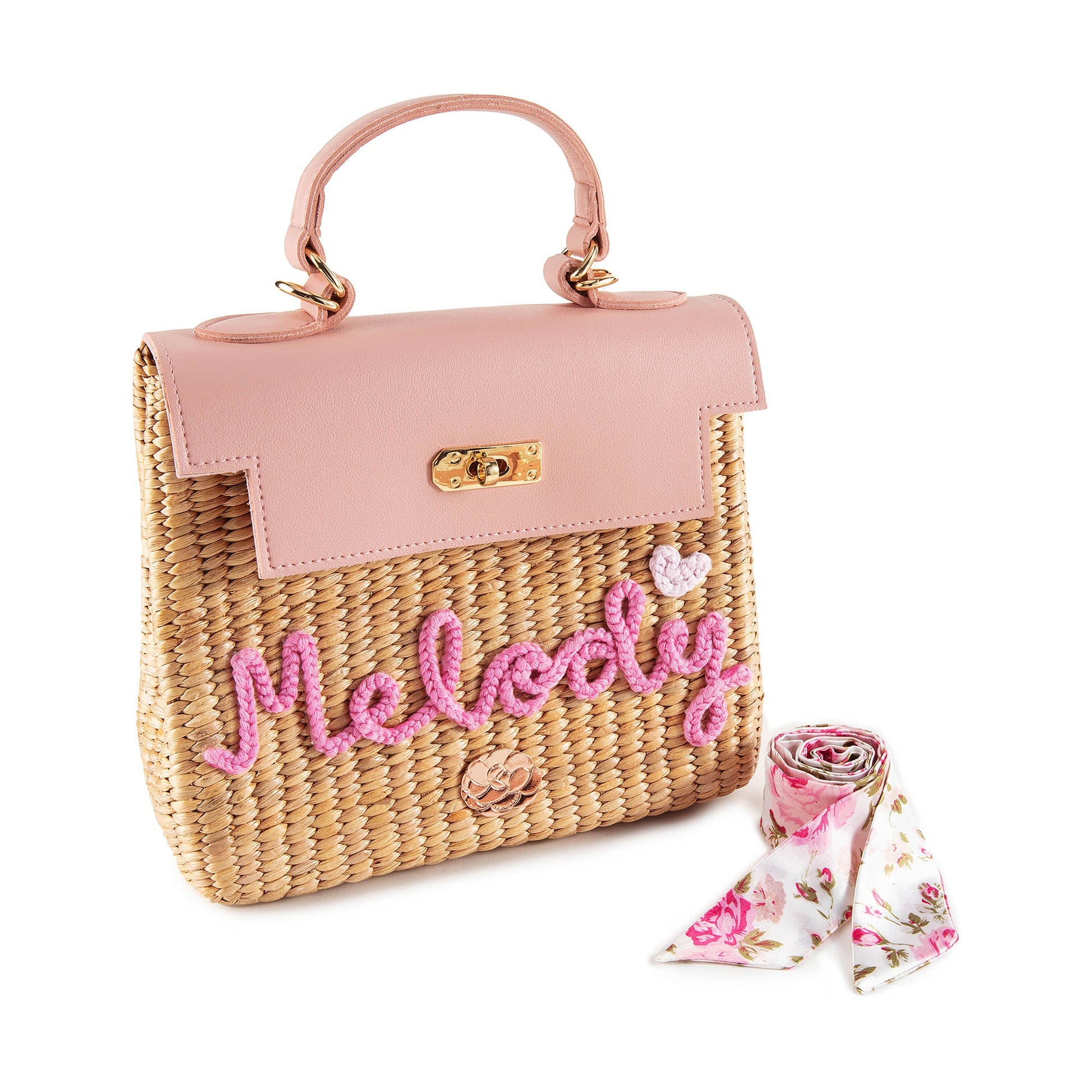 儿童粉色“Melody”手提复古草编包