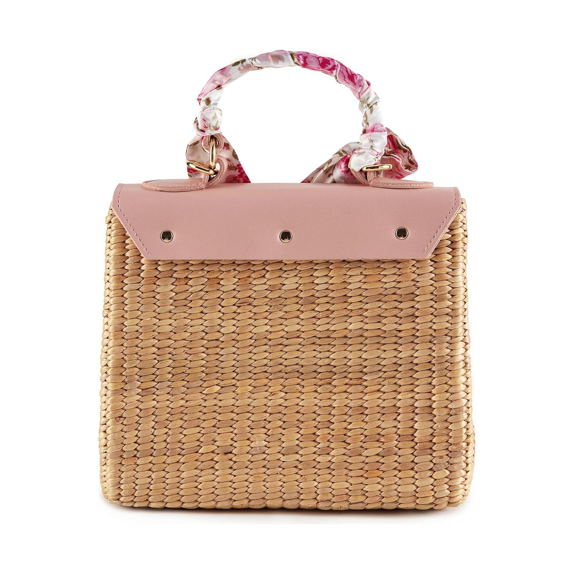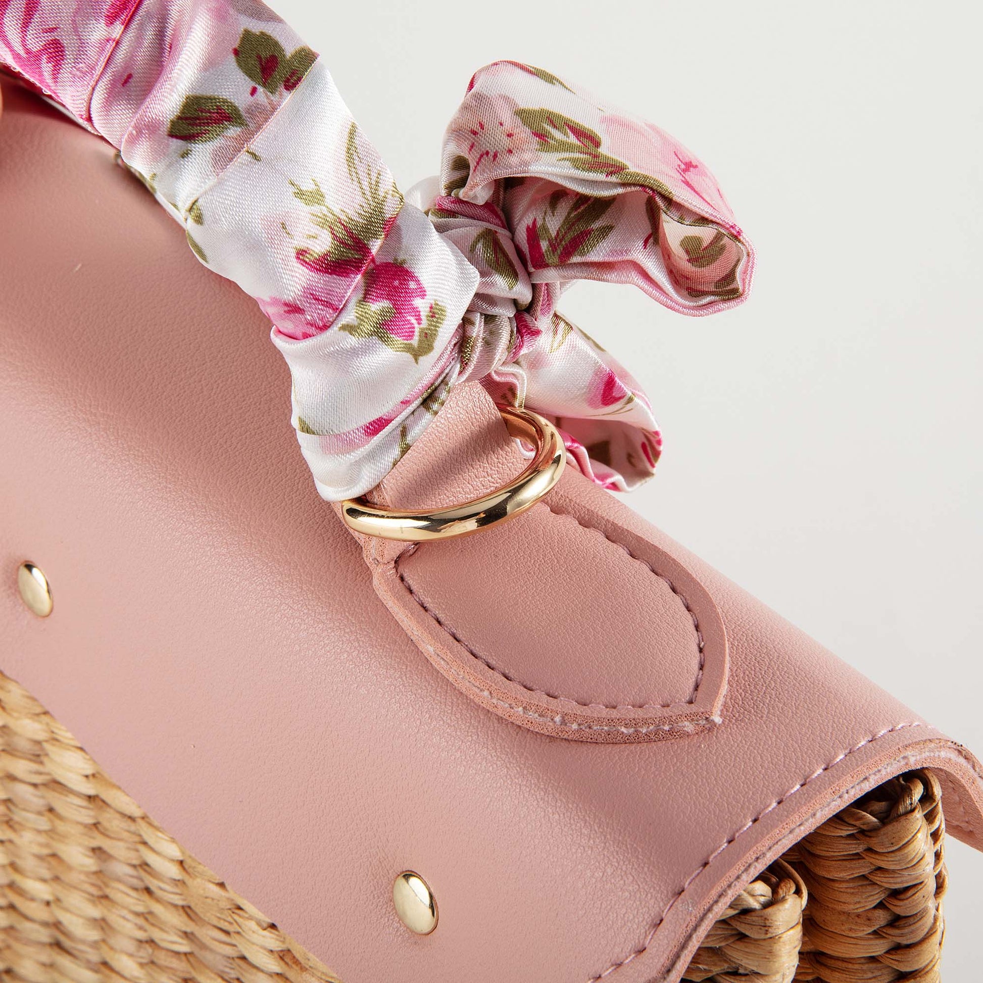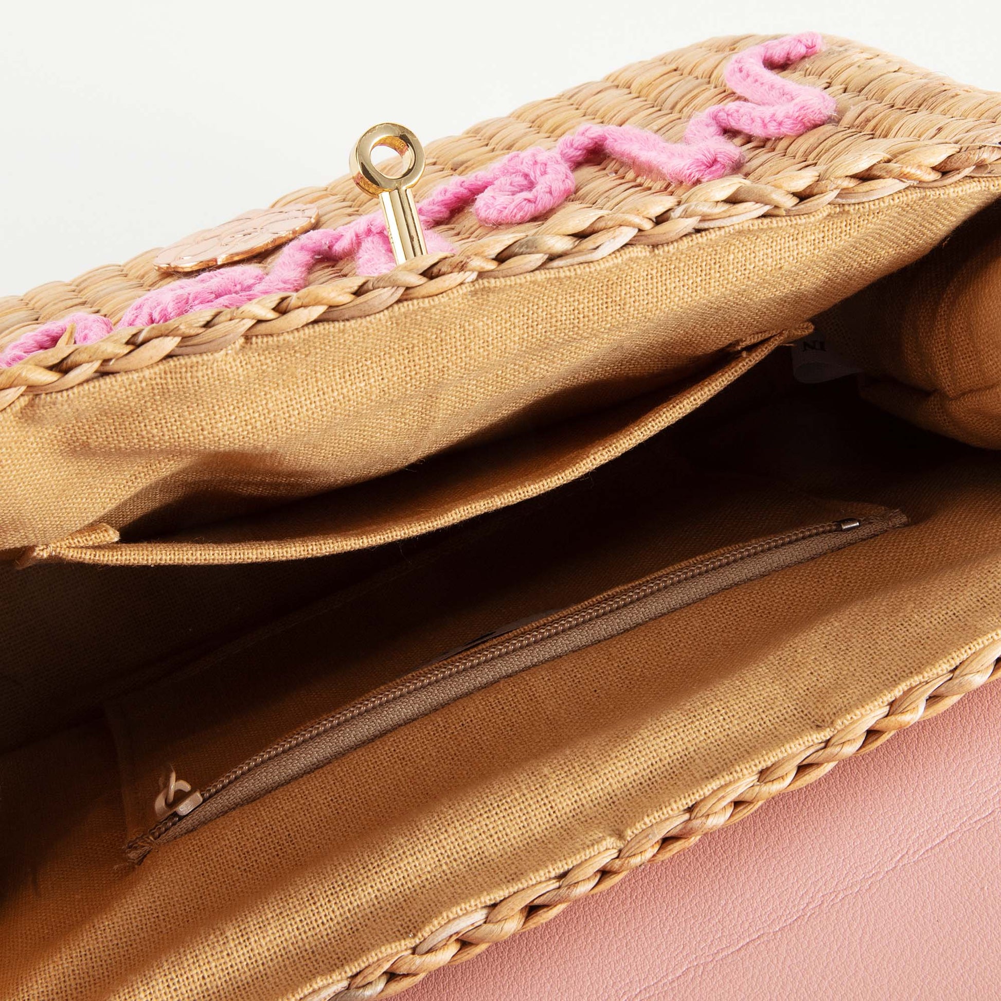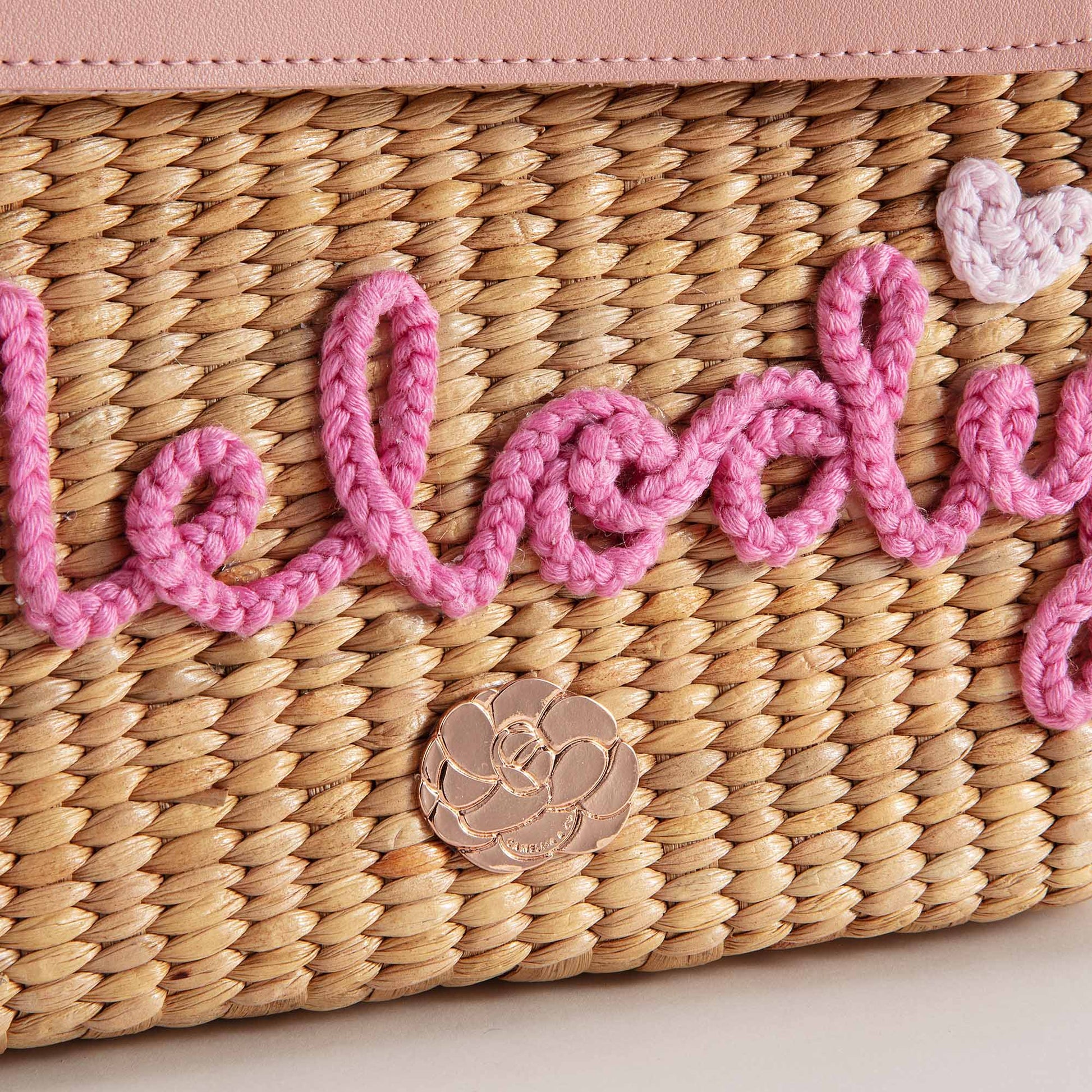 儿童粉色“Melody”手提复古草编包