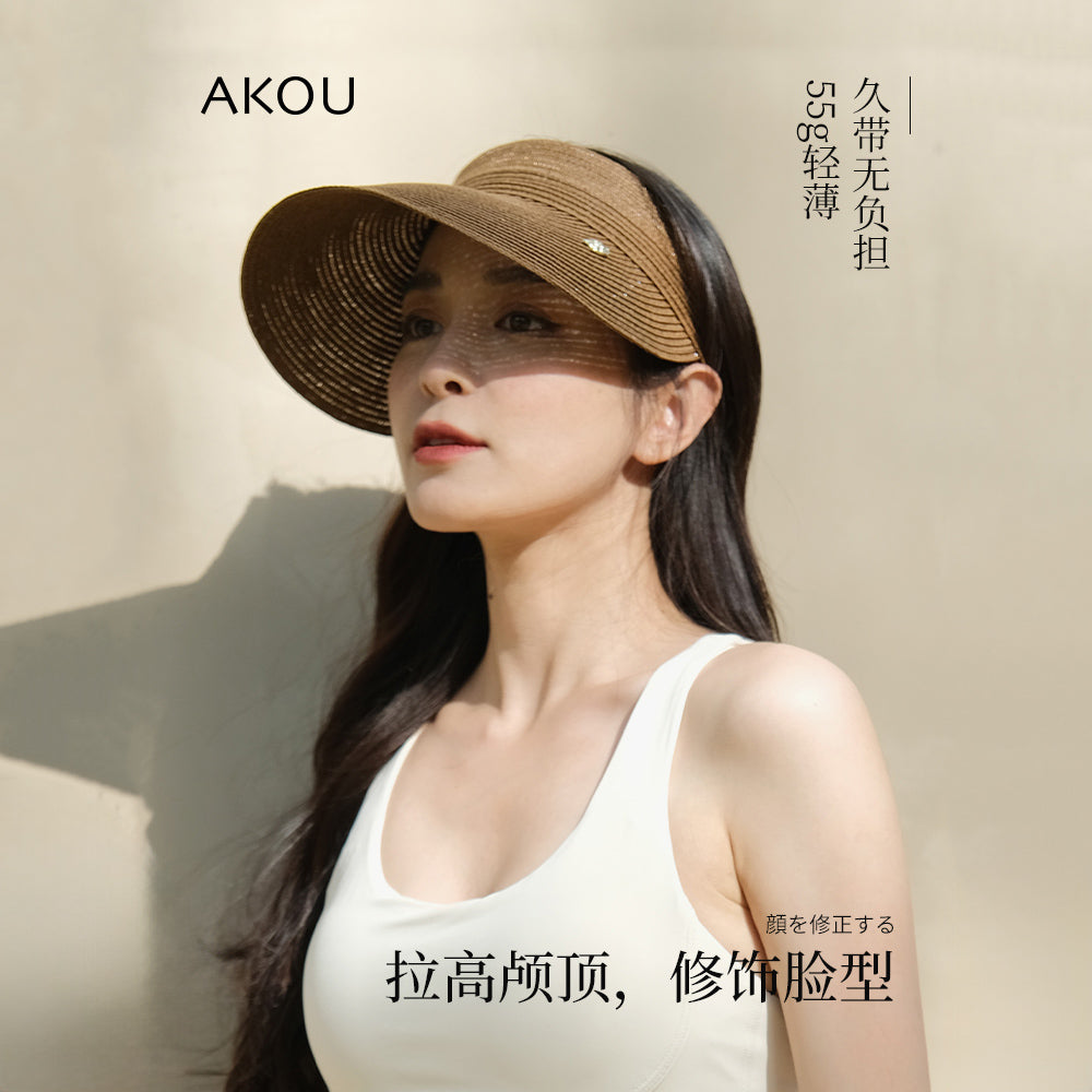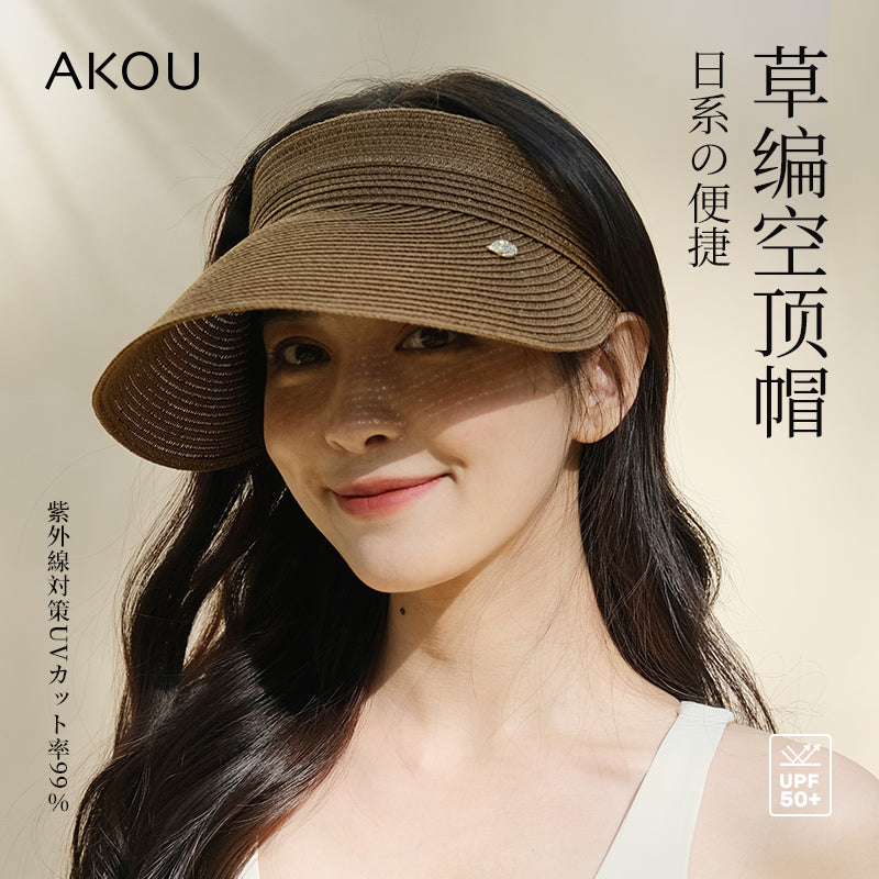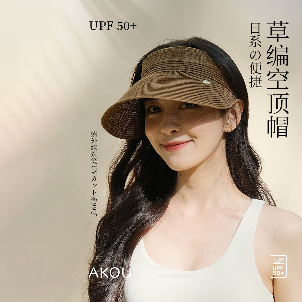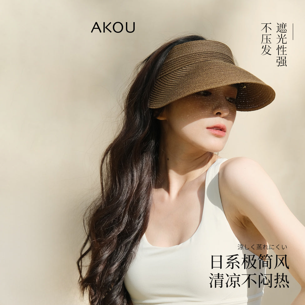深棕色便捷编织款防晒帽