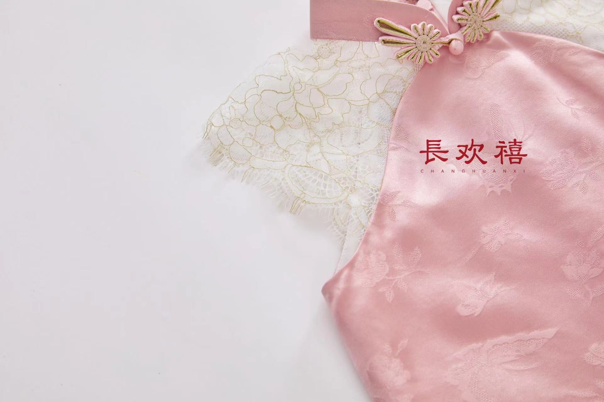 女童粉色"梦蝴蝶”中式旗袍