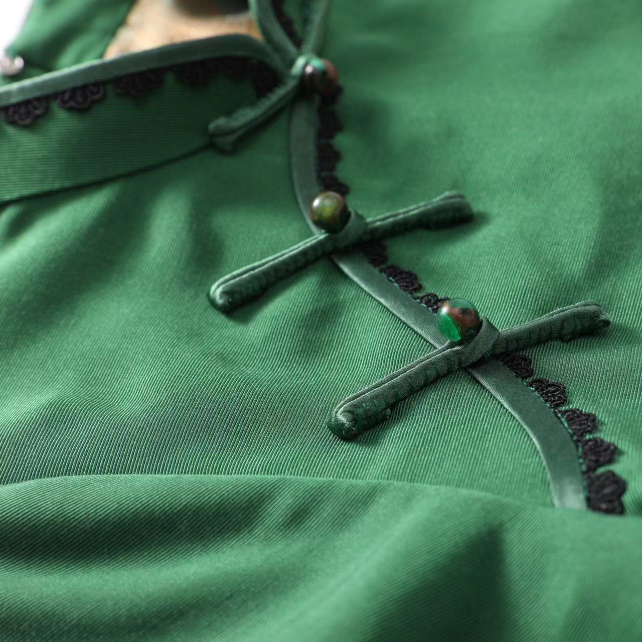 女童绿色"碧玉成妆"中式旗袍