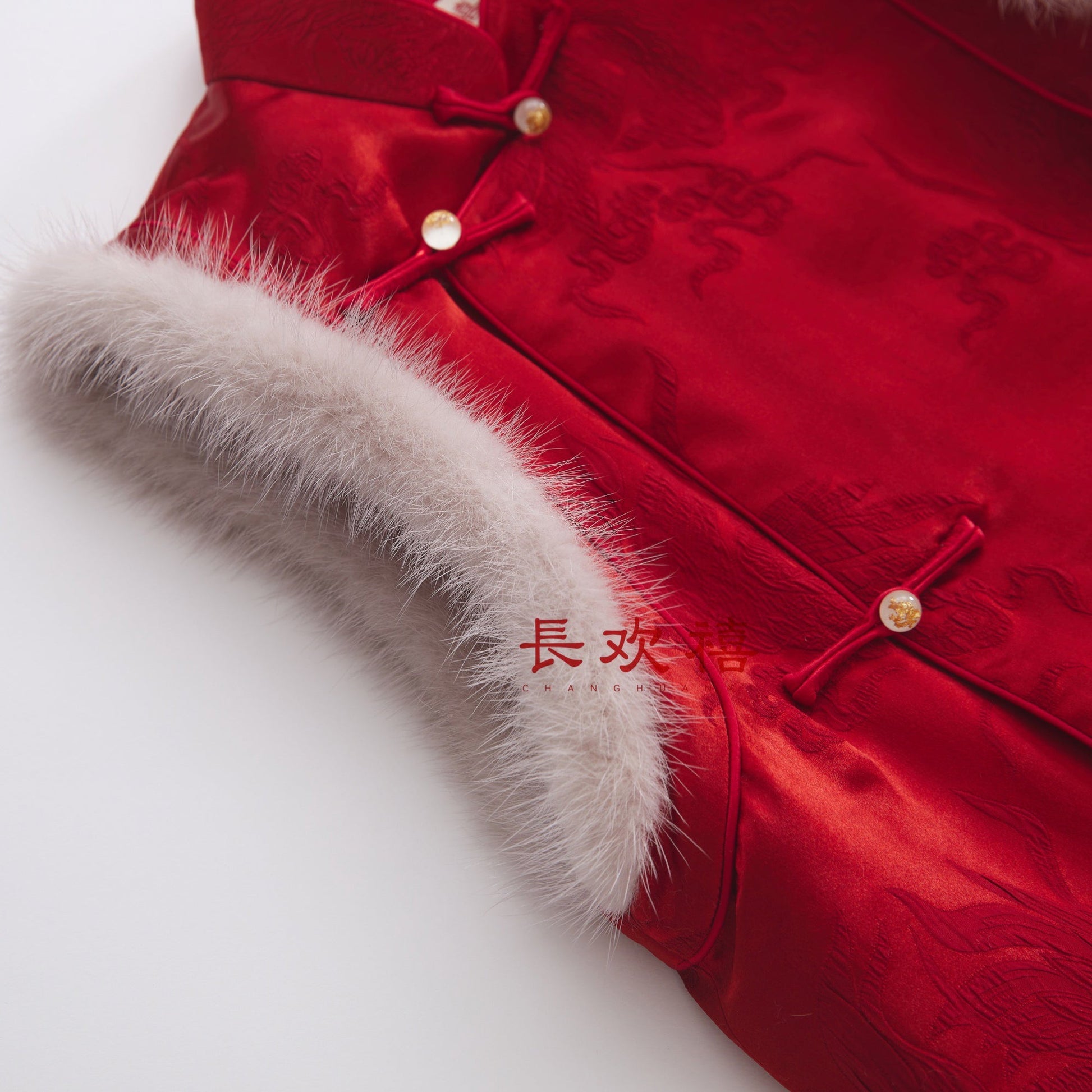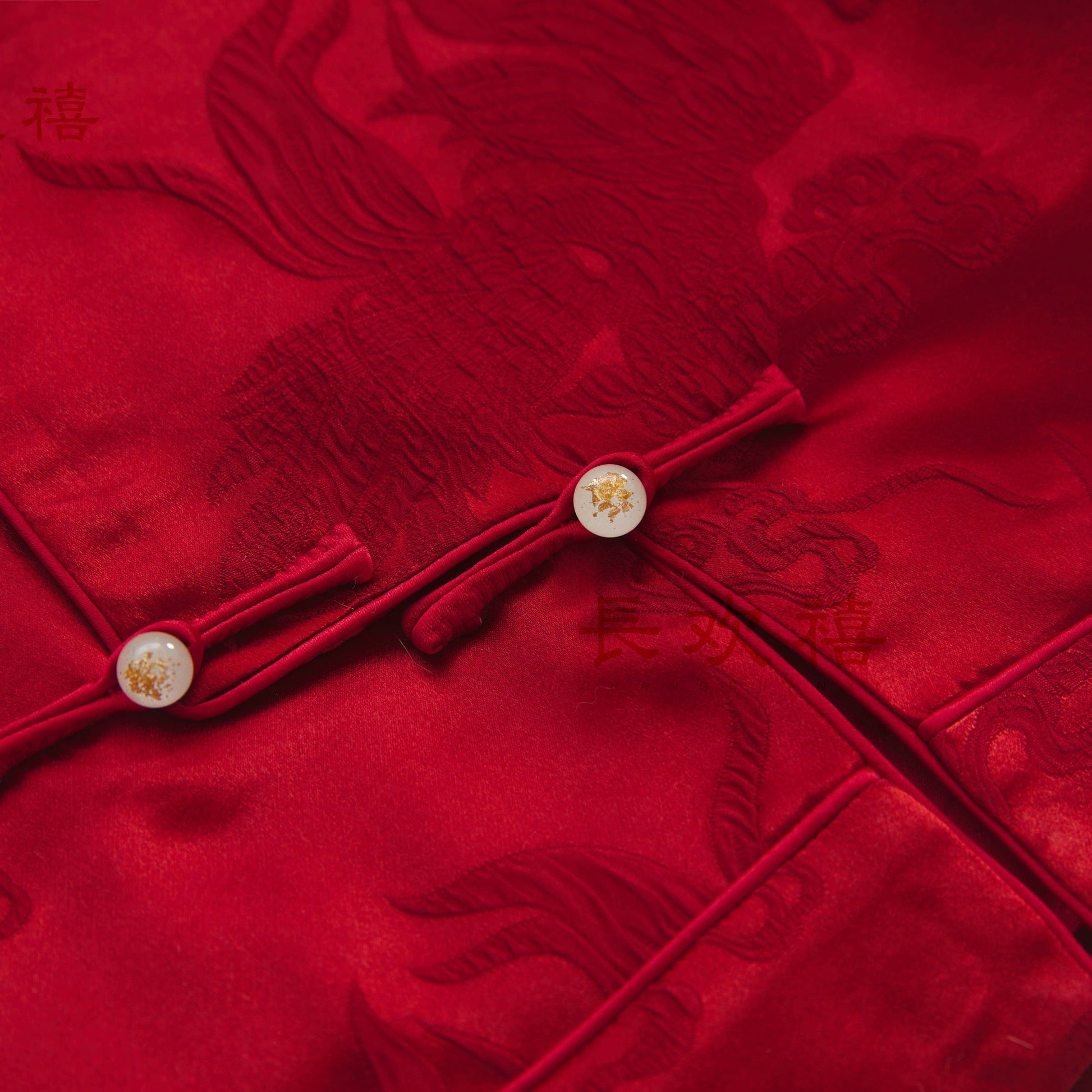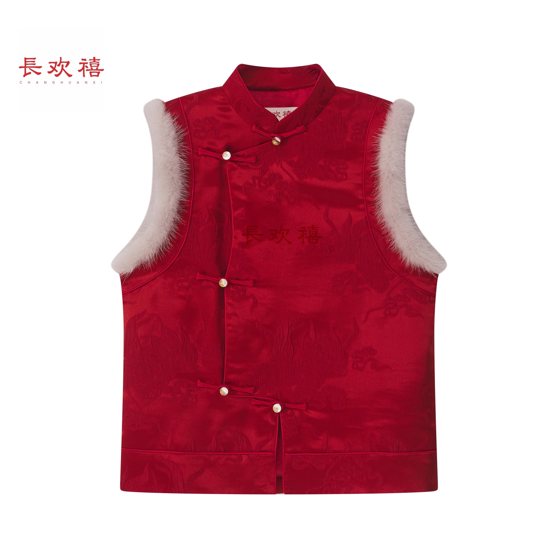 儿童深红色"自在"中式提花棉马甲