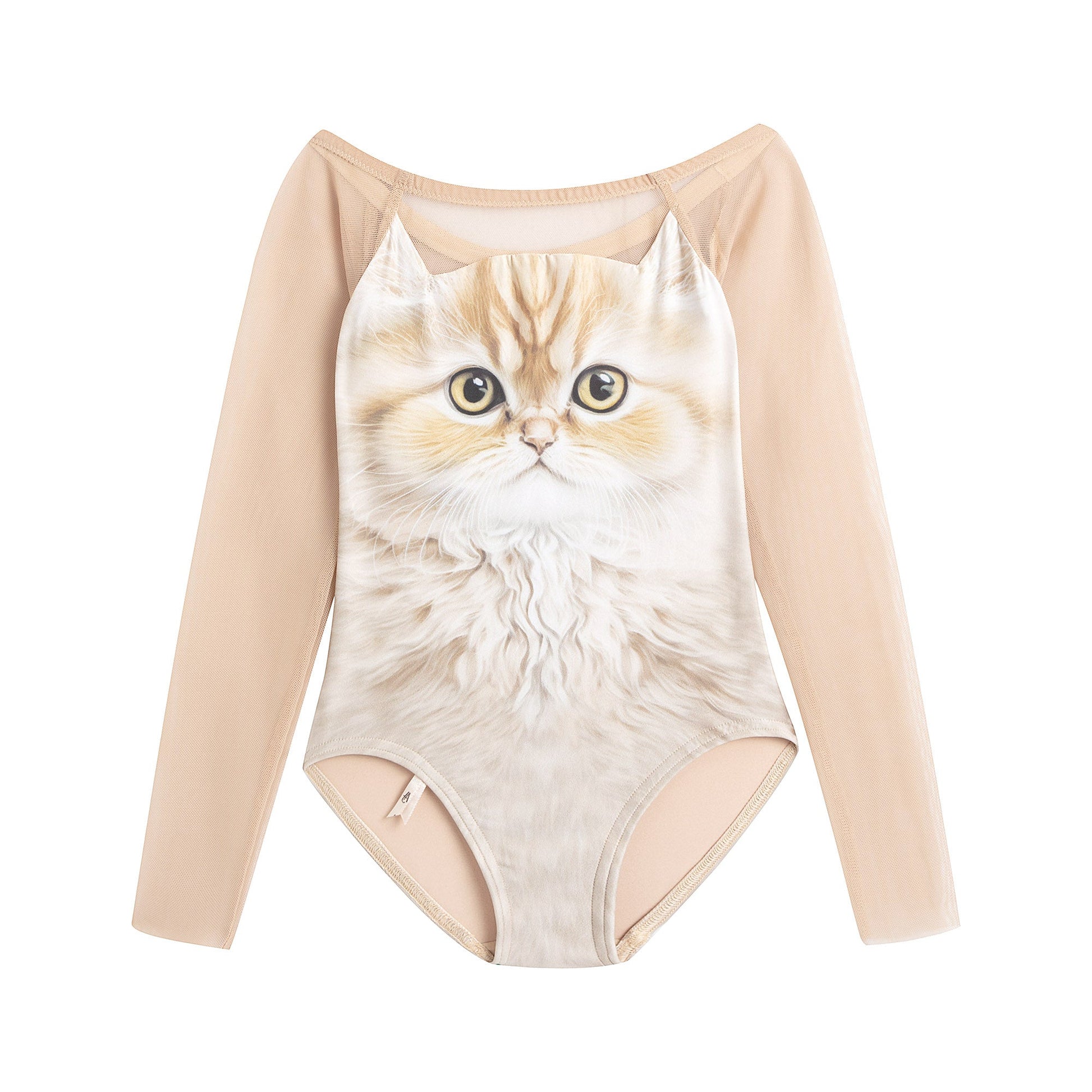 女童蜜糖色猫咪长袖芭蕾舞连体衣
