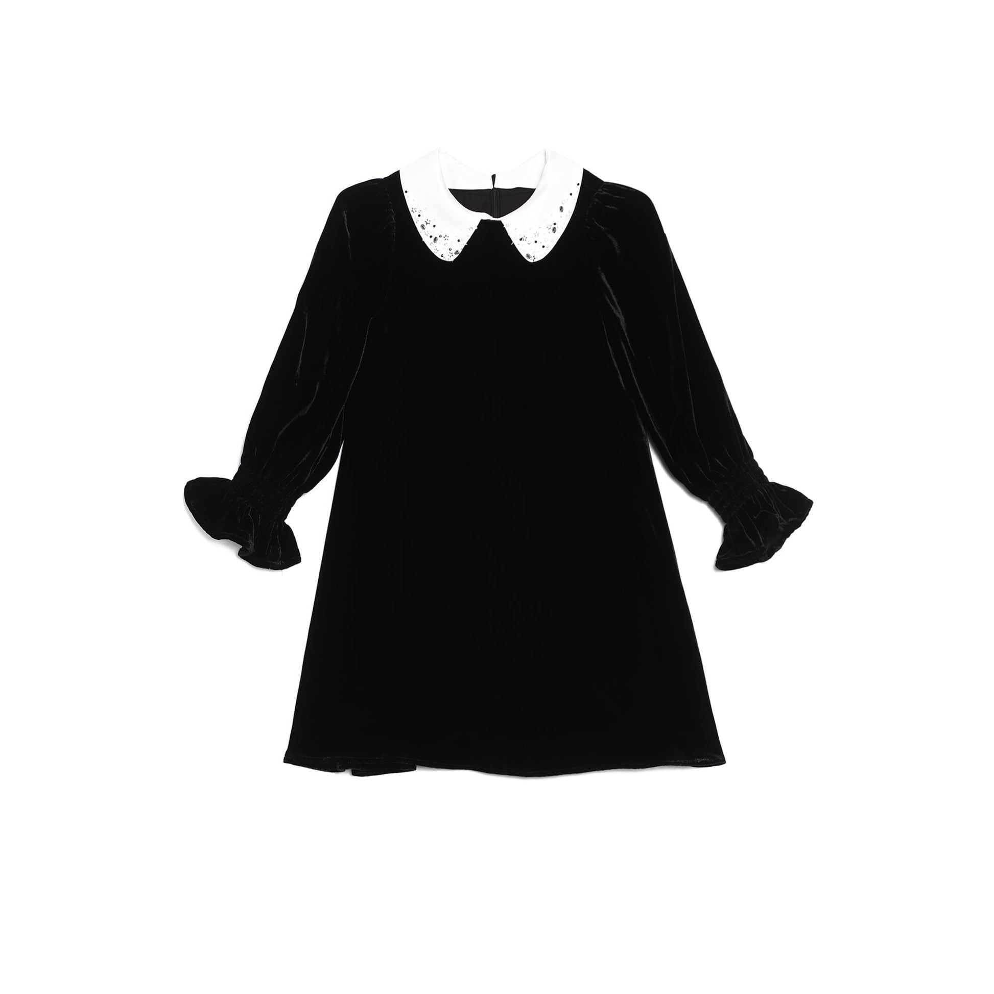 女童黑色真丝绒珠绣礼服裙