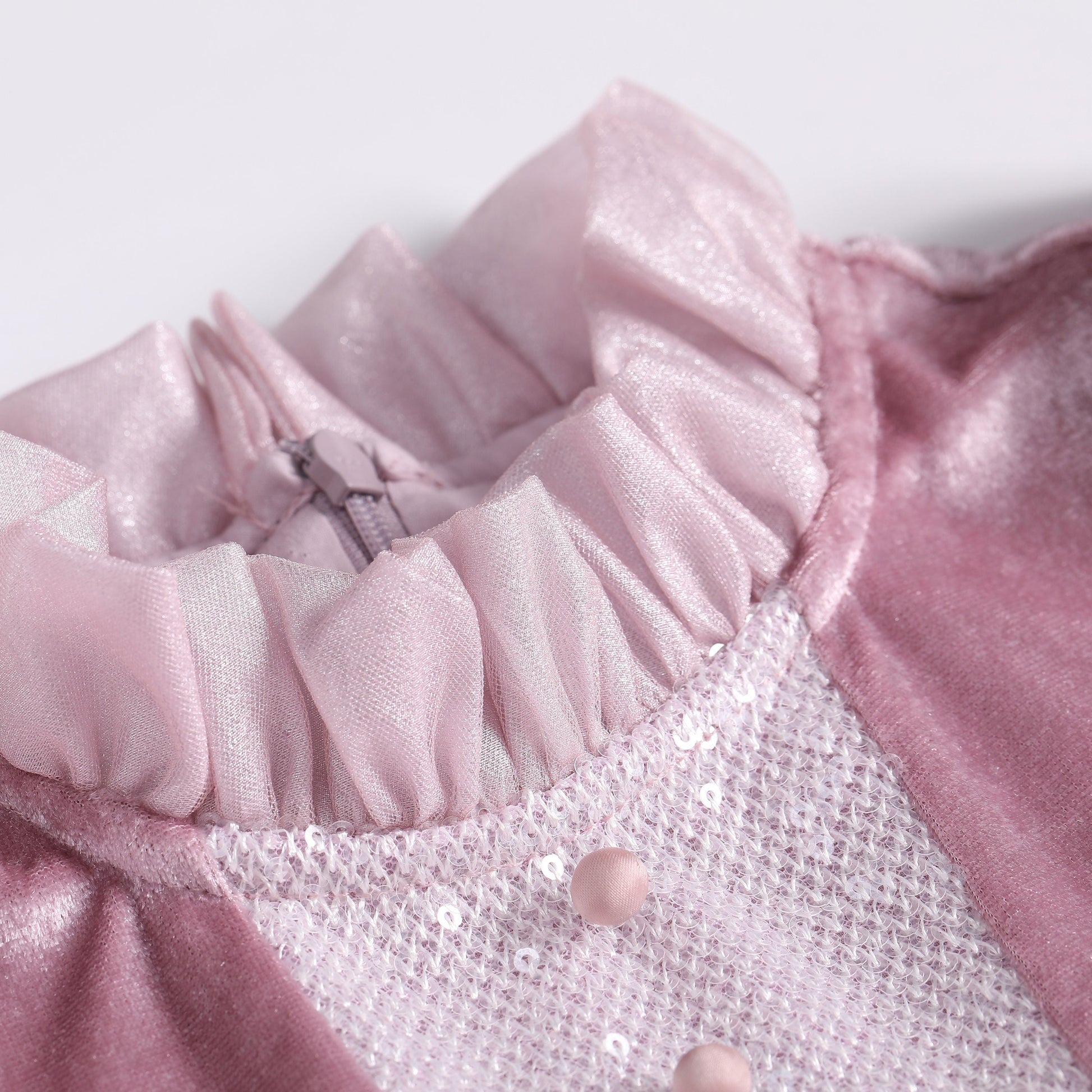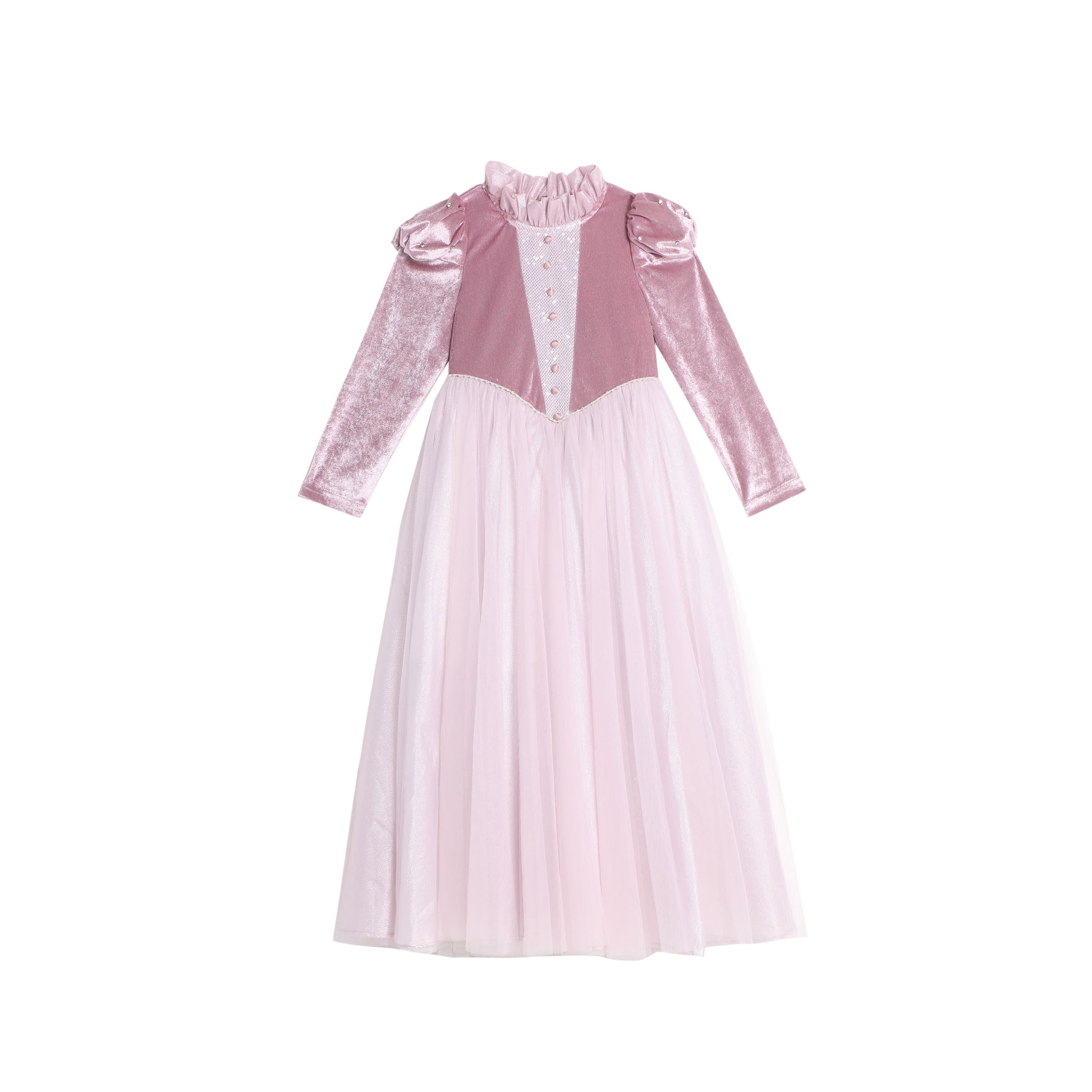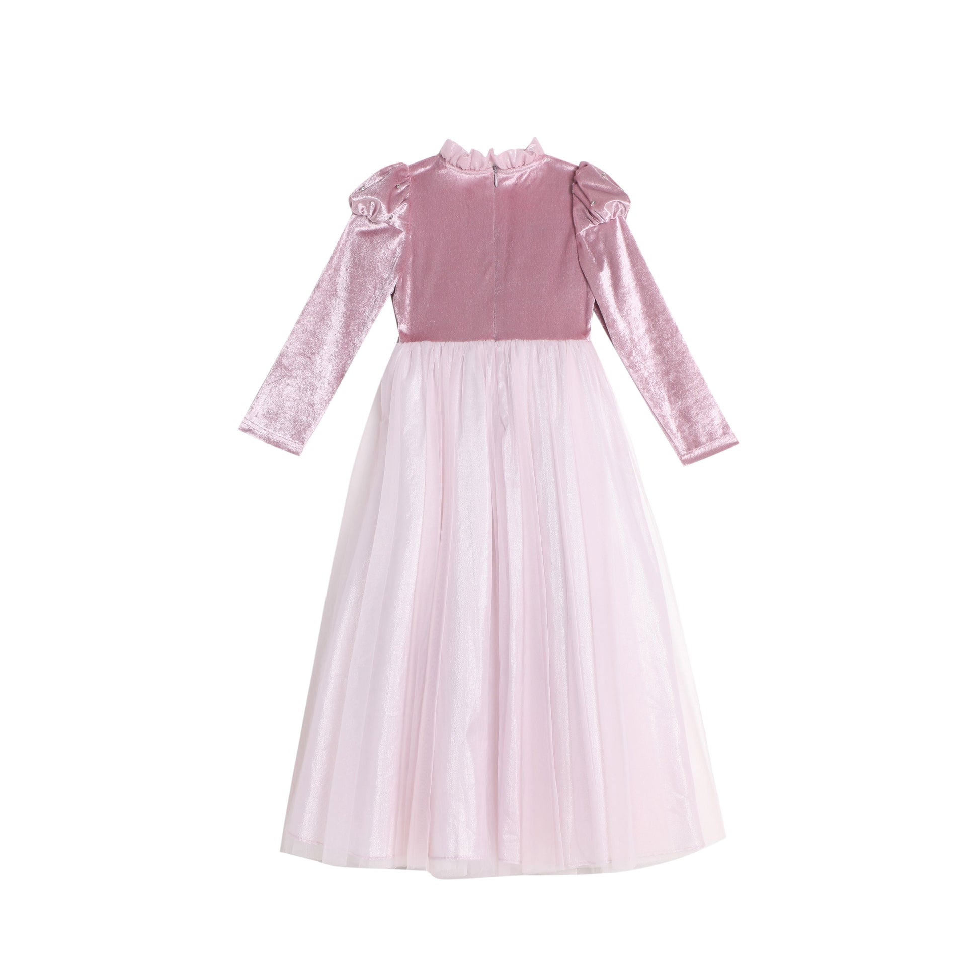 女童粉紫色长袖公主礼服裙