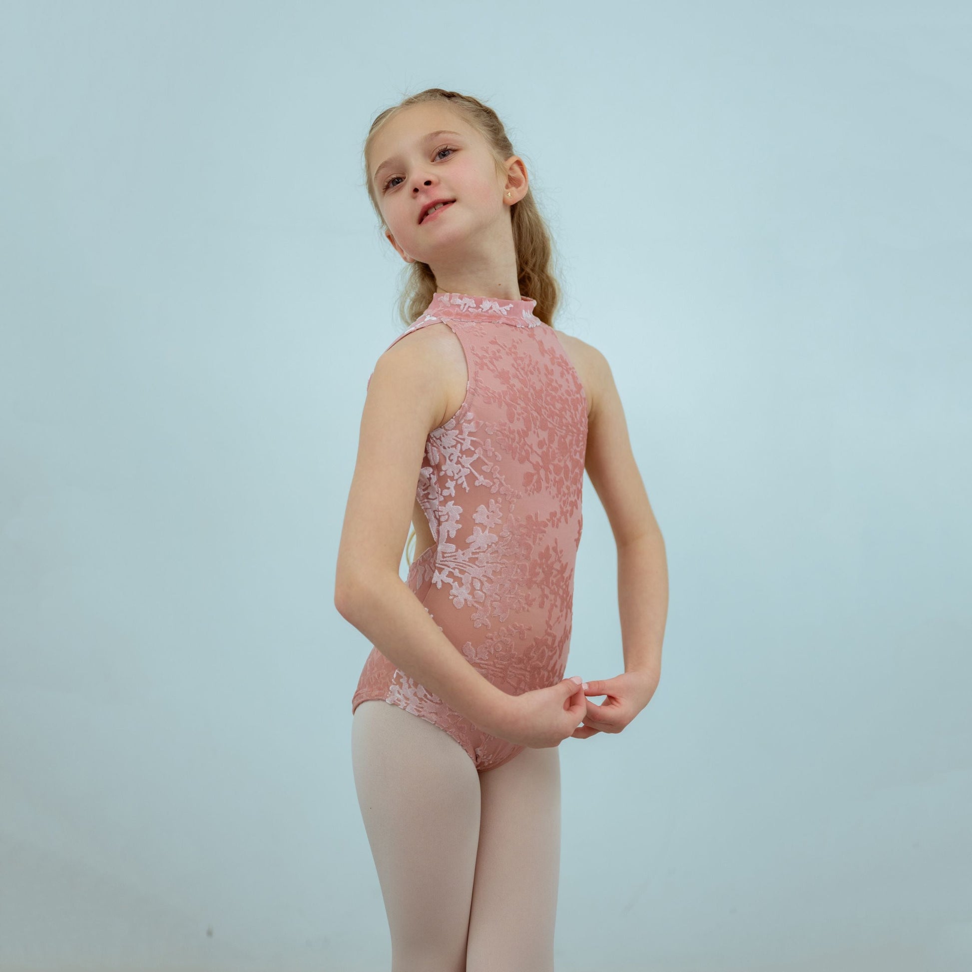 女童粉色丝绒芭蕾舞连体衣(T1517/Dusty Pink)