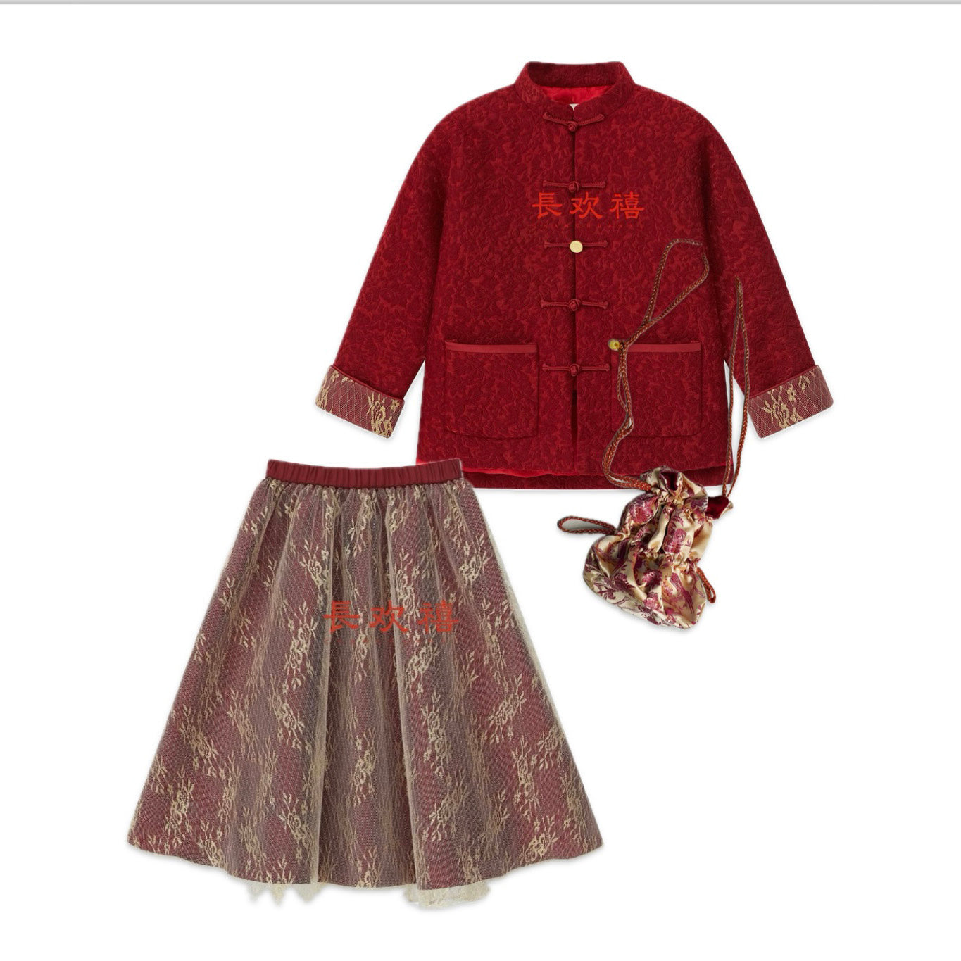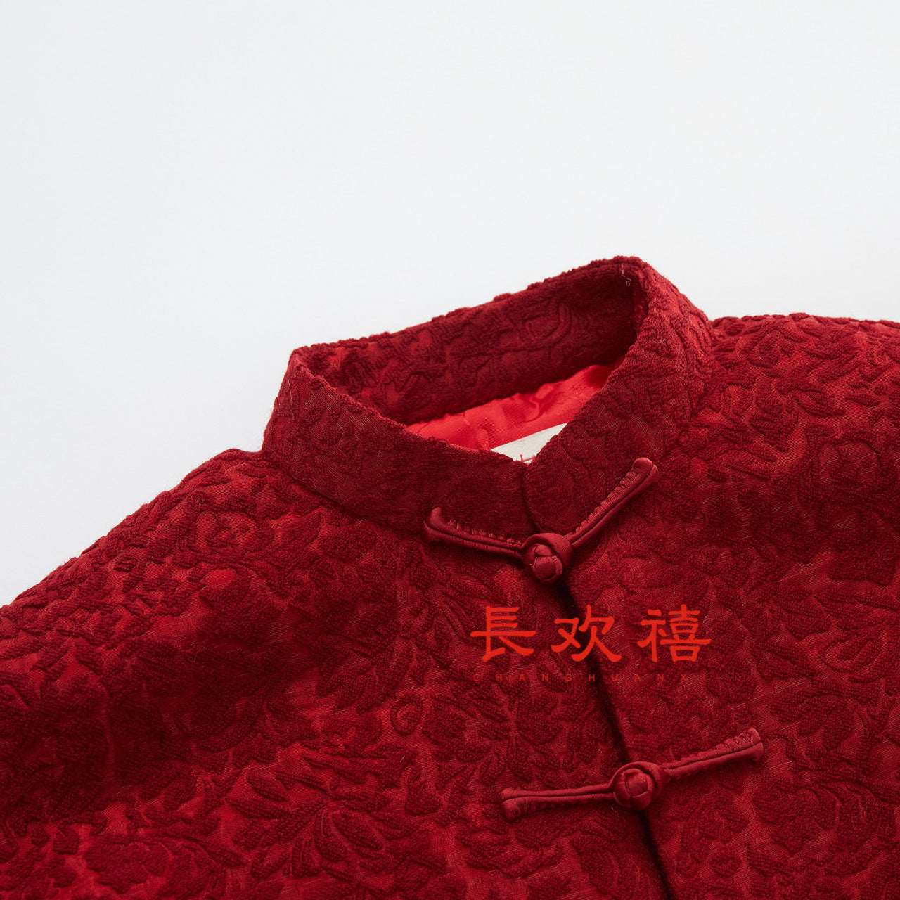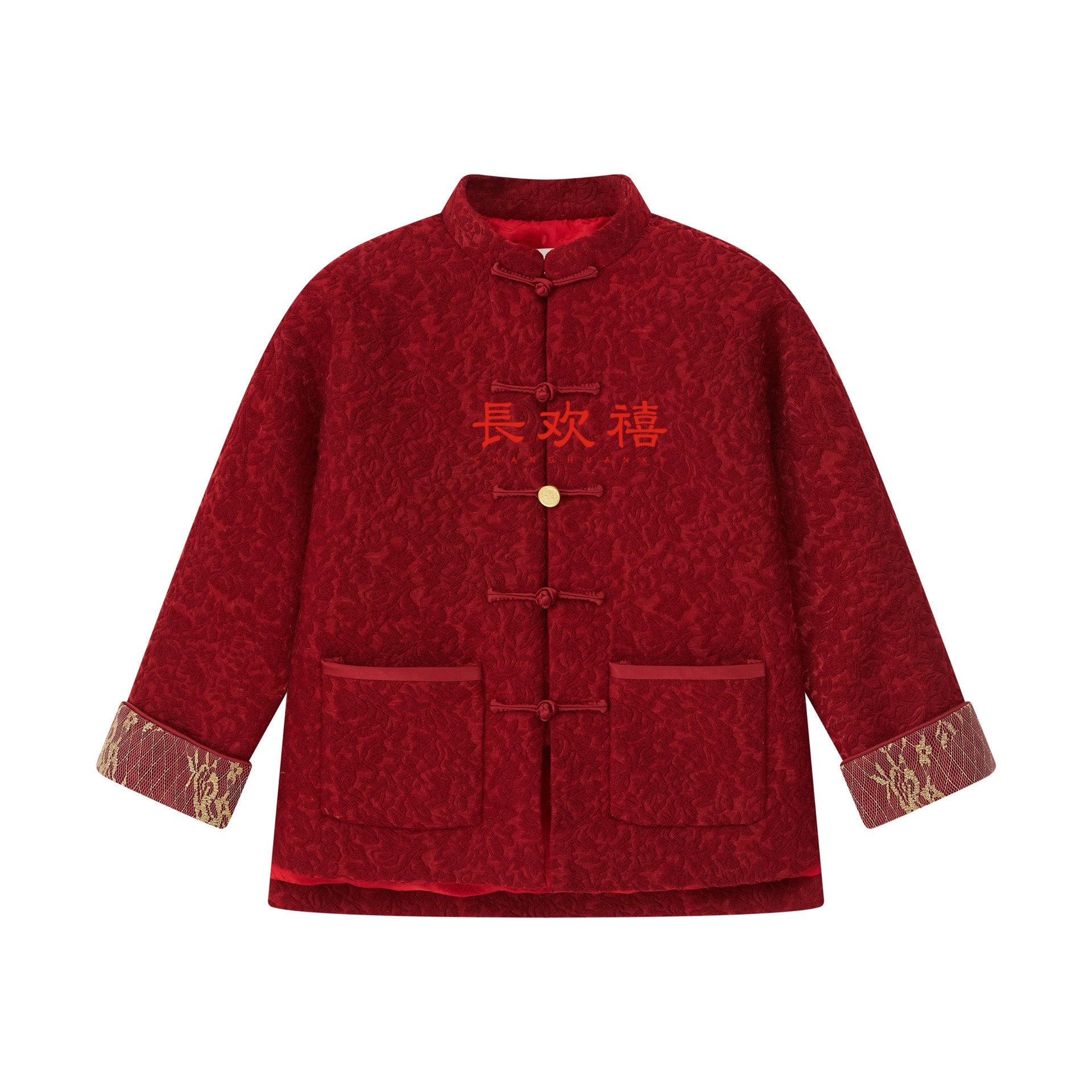 女童红色"鎏金花锦"中式外套