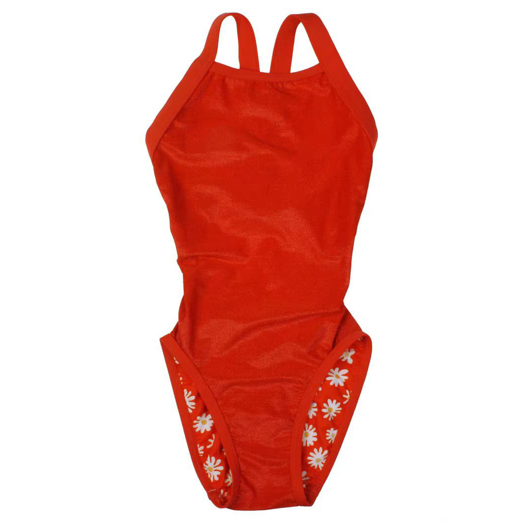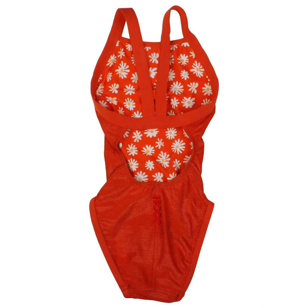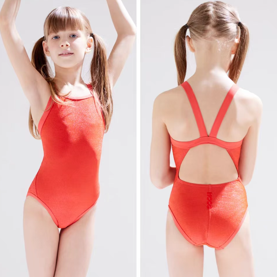 女童橙色双面泳衣