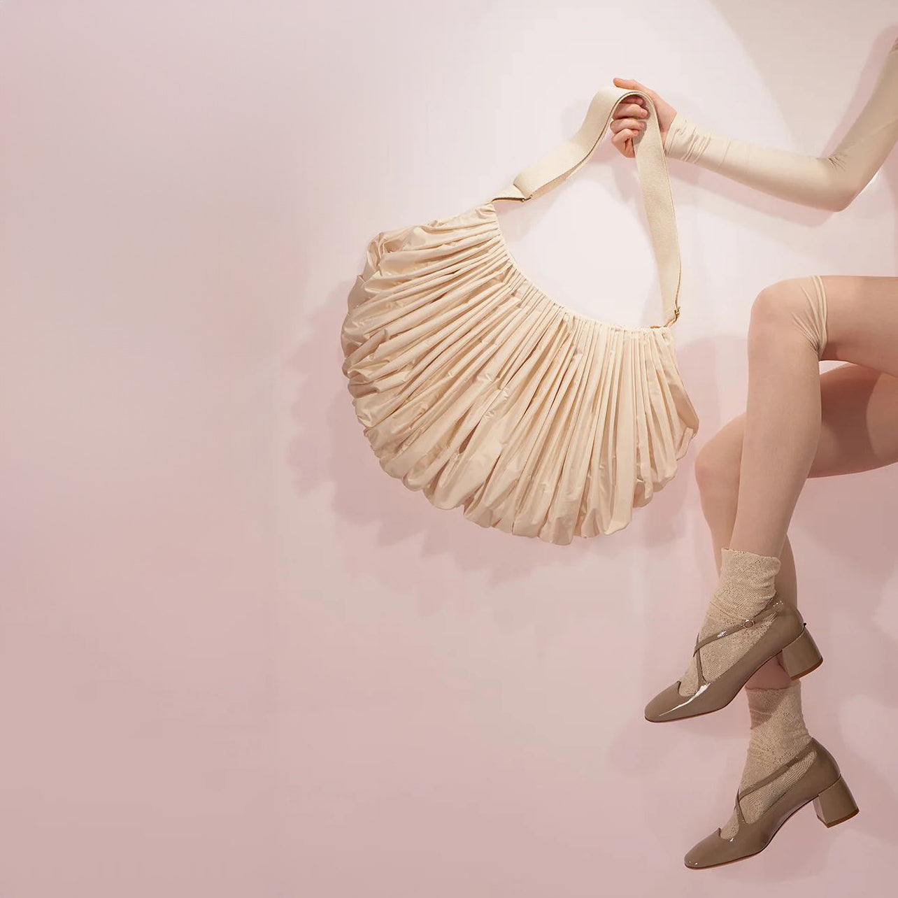 女士米白色'WHIPPED CREAM'百褶包(35x25cm)