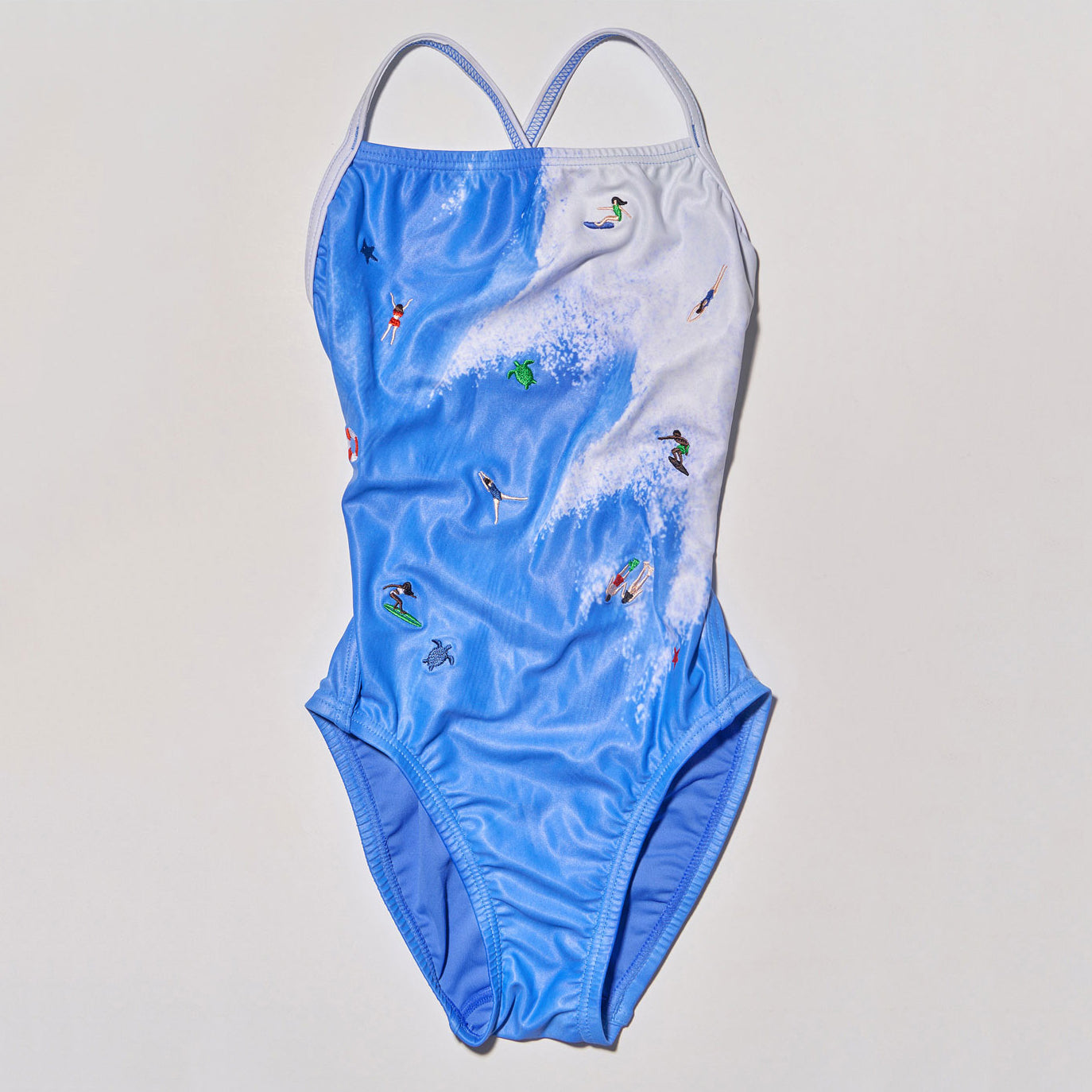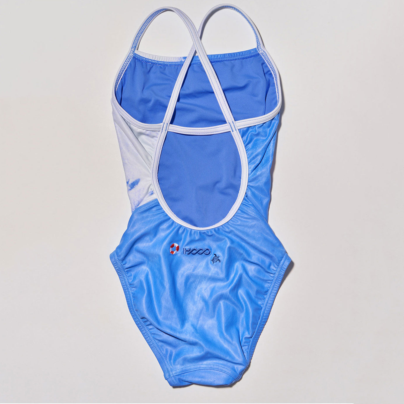 女童蓝色刺绣专业泳衣