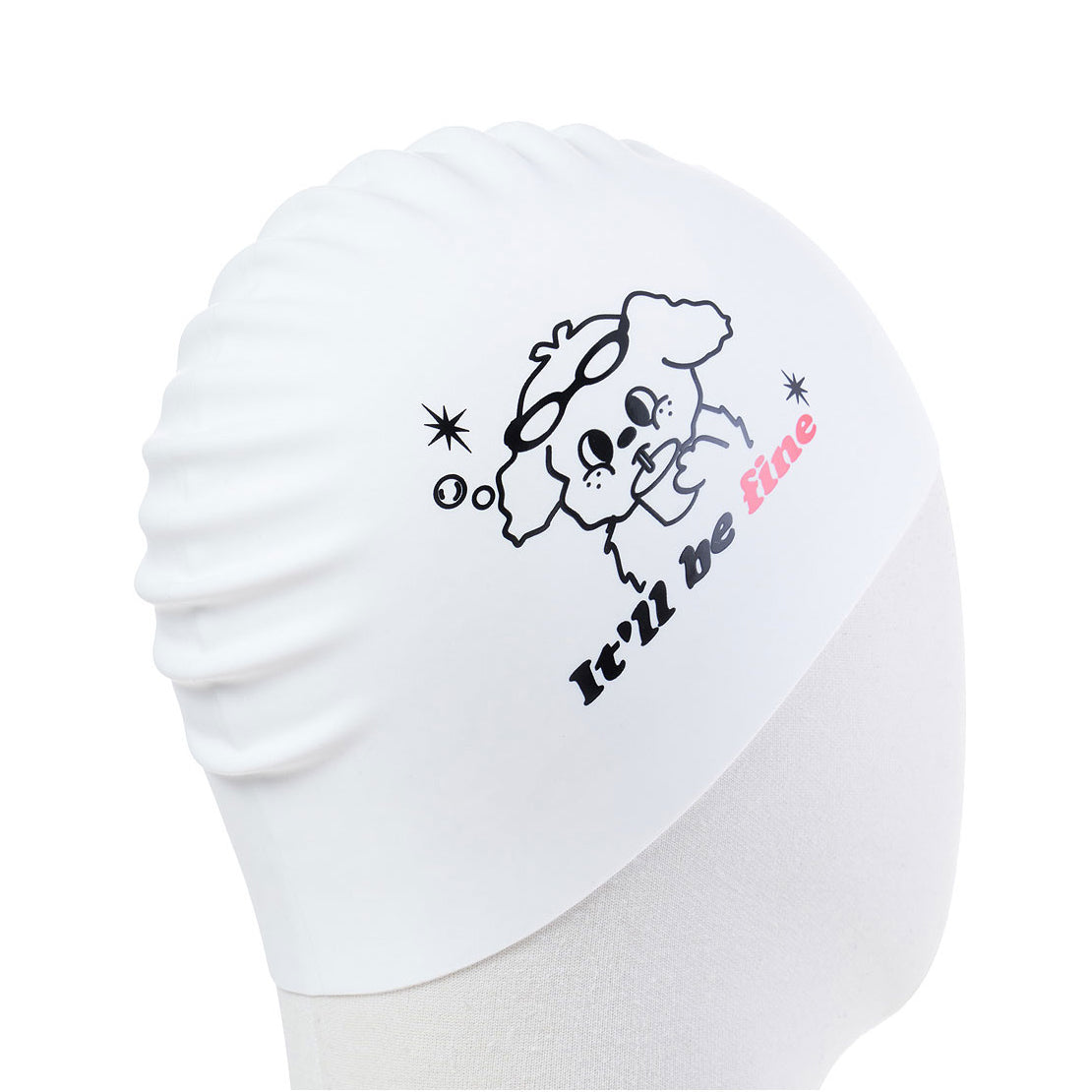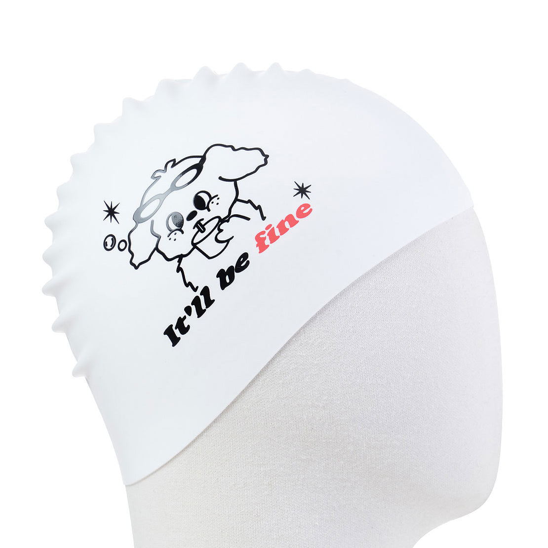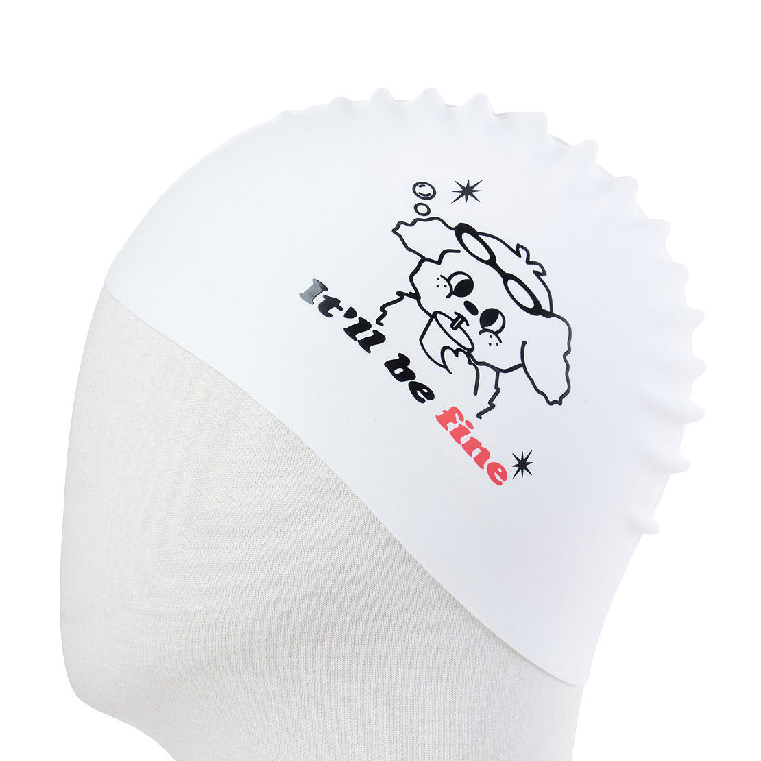 成人款白色印花硅胶泳帽