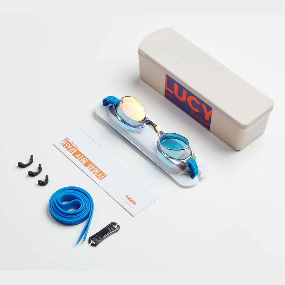 成人款蓝色无胶圈竞速泳镜(LUCY_BKRD)