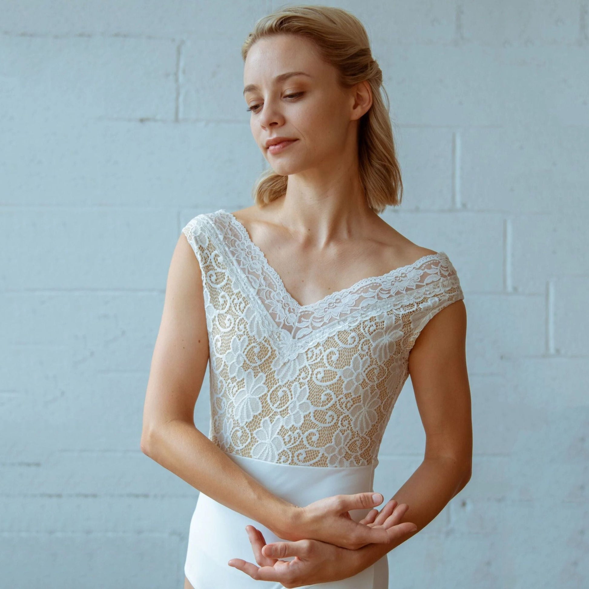 女士白色蕾丝芭蕾舞连体衣(2032/White)