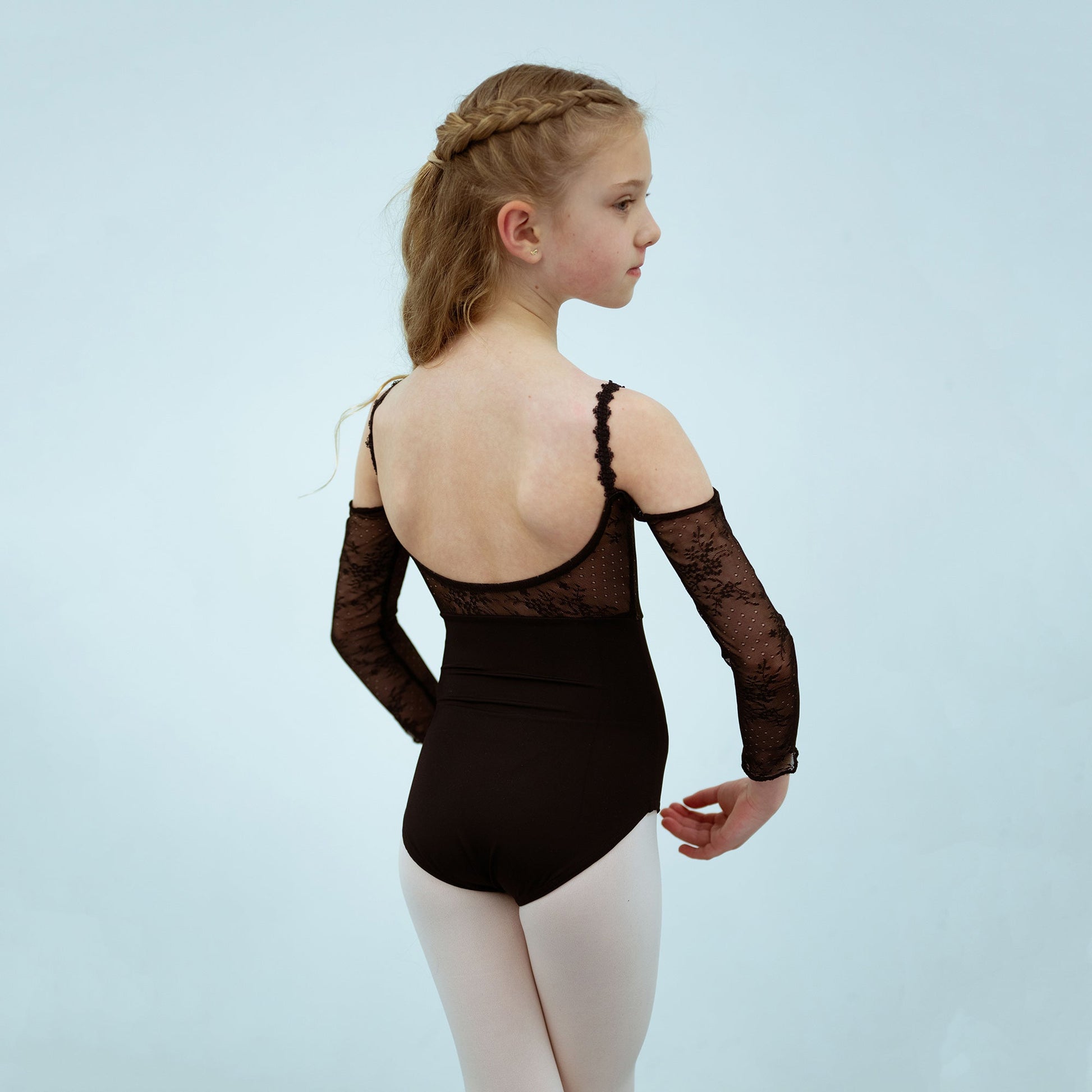 女童黑色露肩芭蕾舞连体衣(2236/Black)
