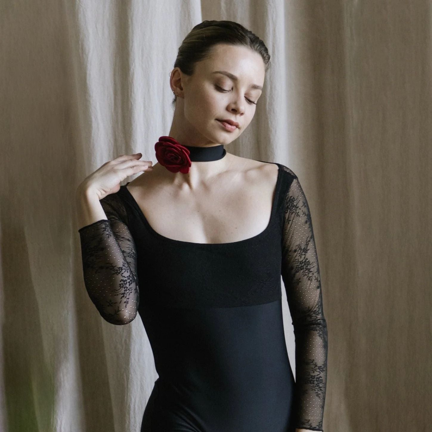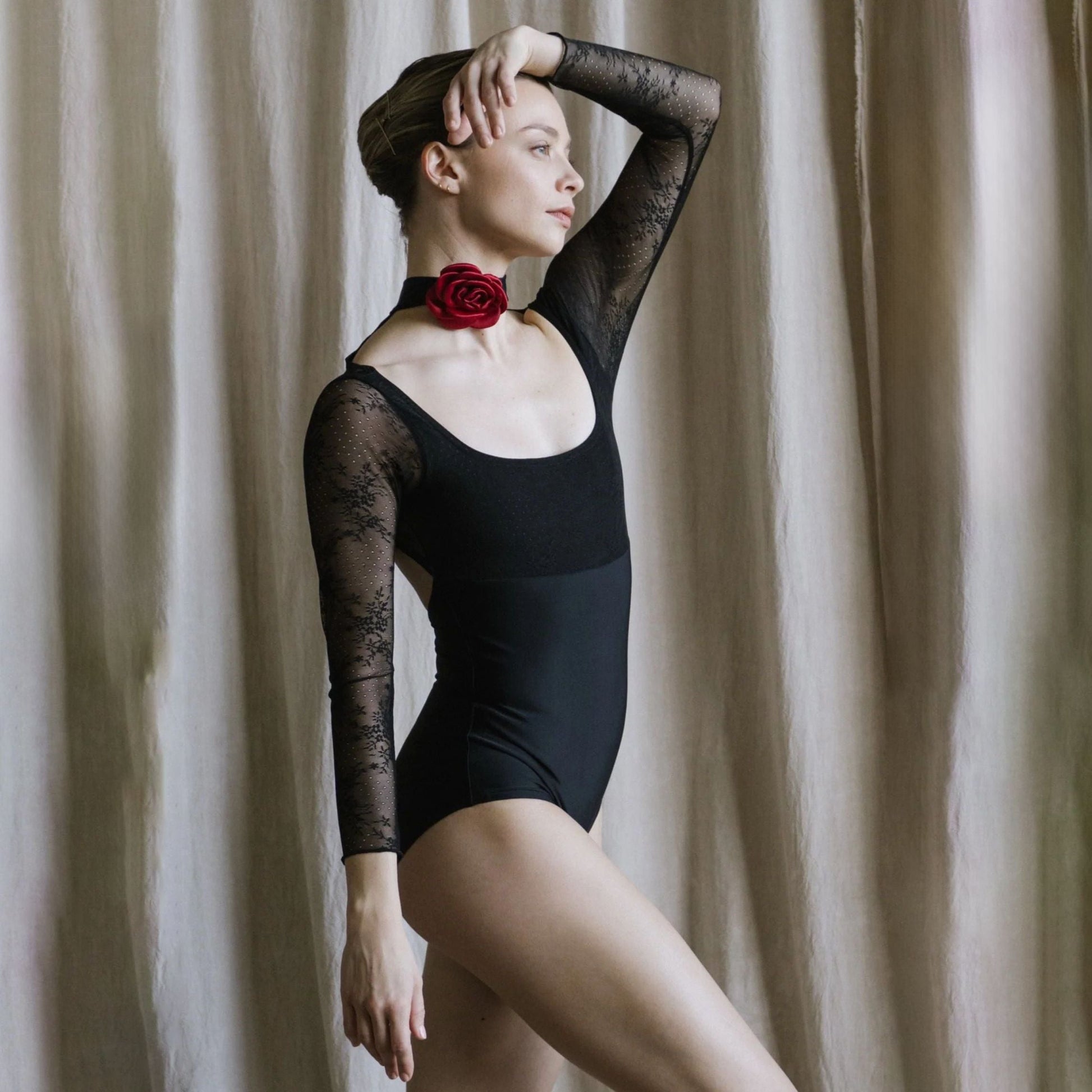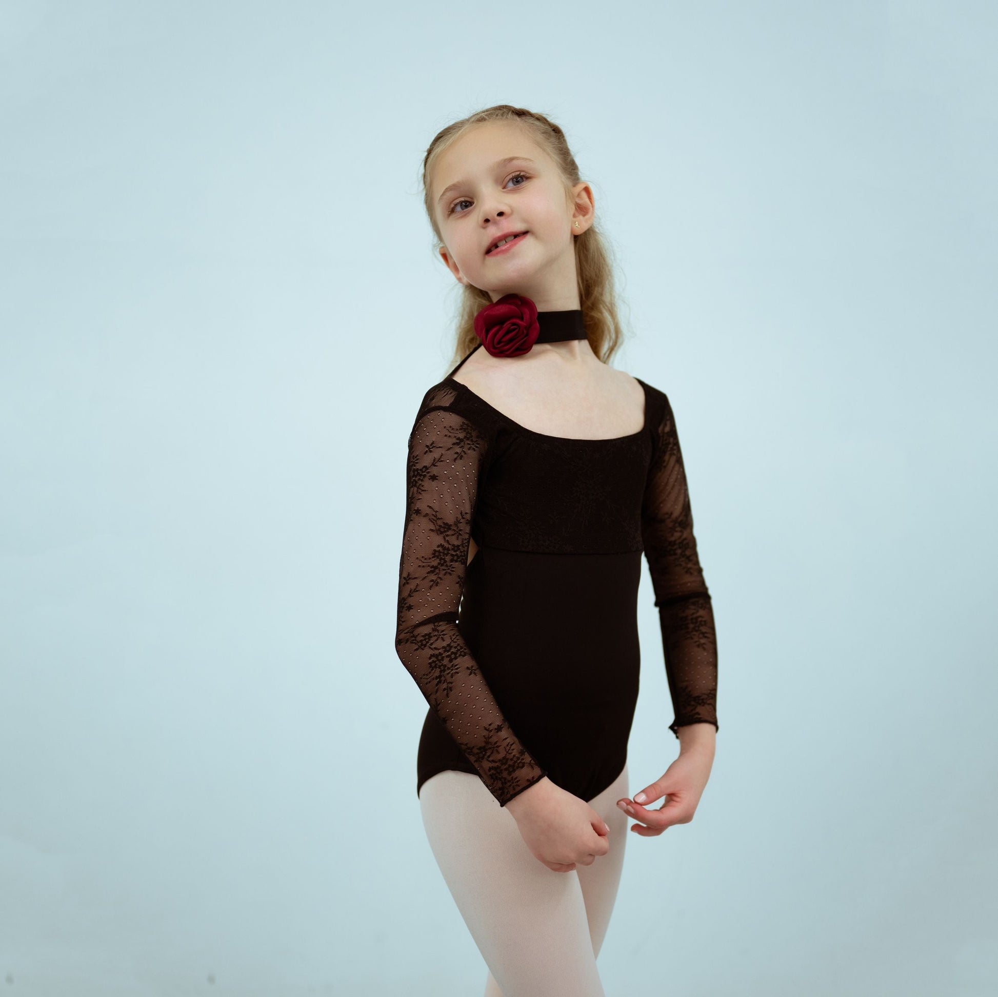 女童黑色长袖芭蕾舞连体衣(2343/Black)