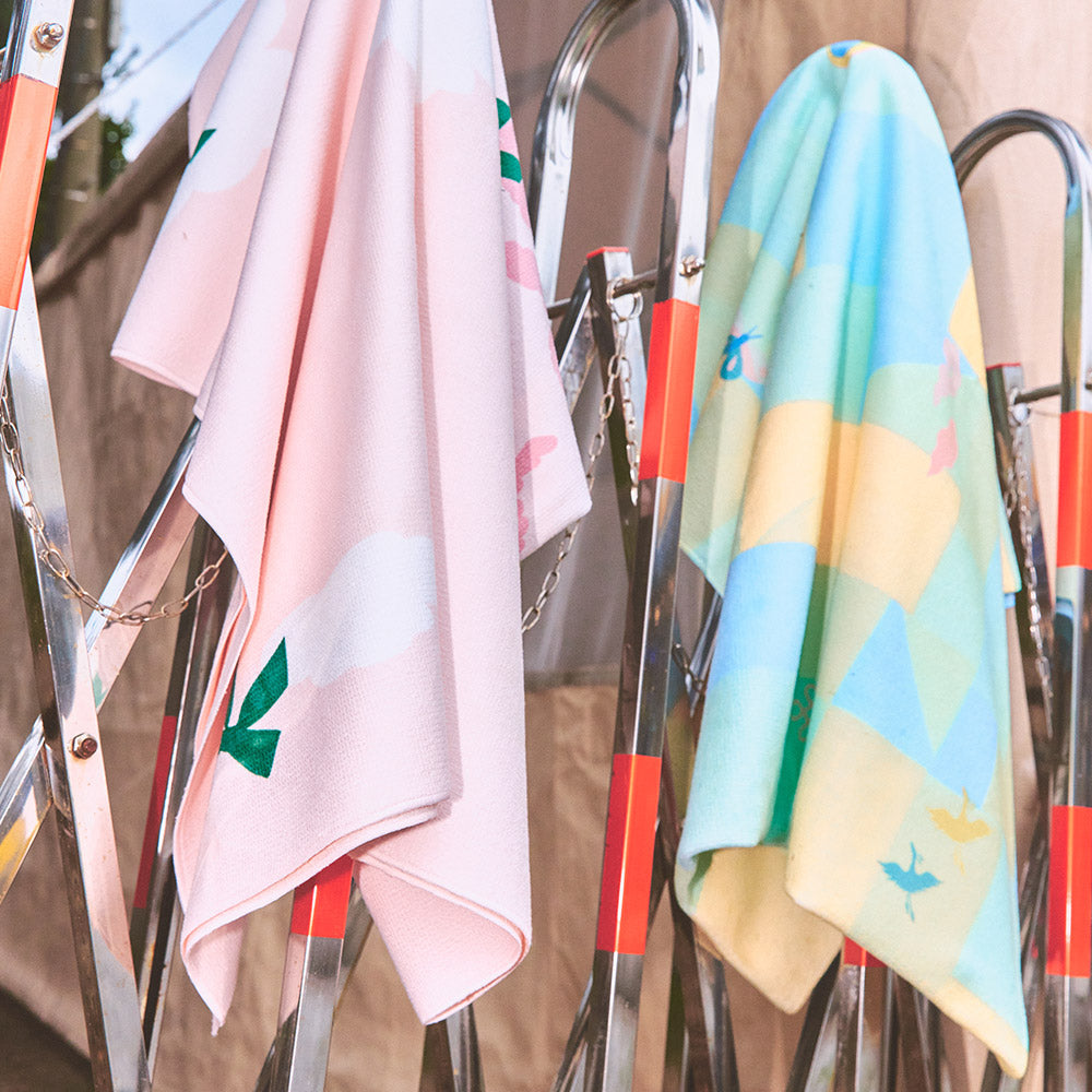 粉蓝拼接印花游泳浴巾(130x70cm)