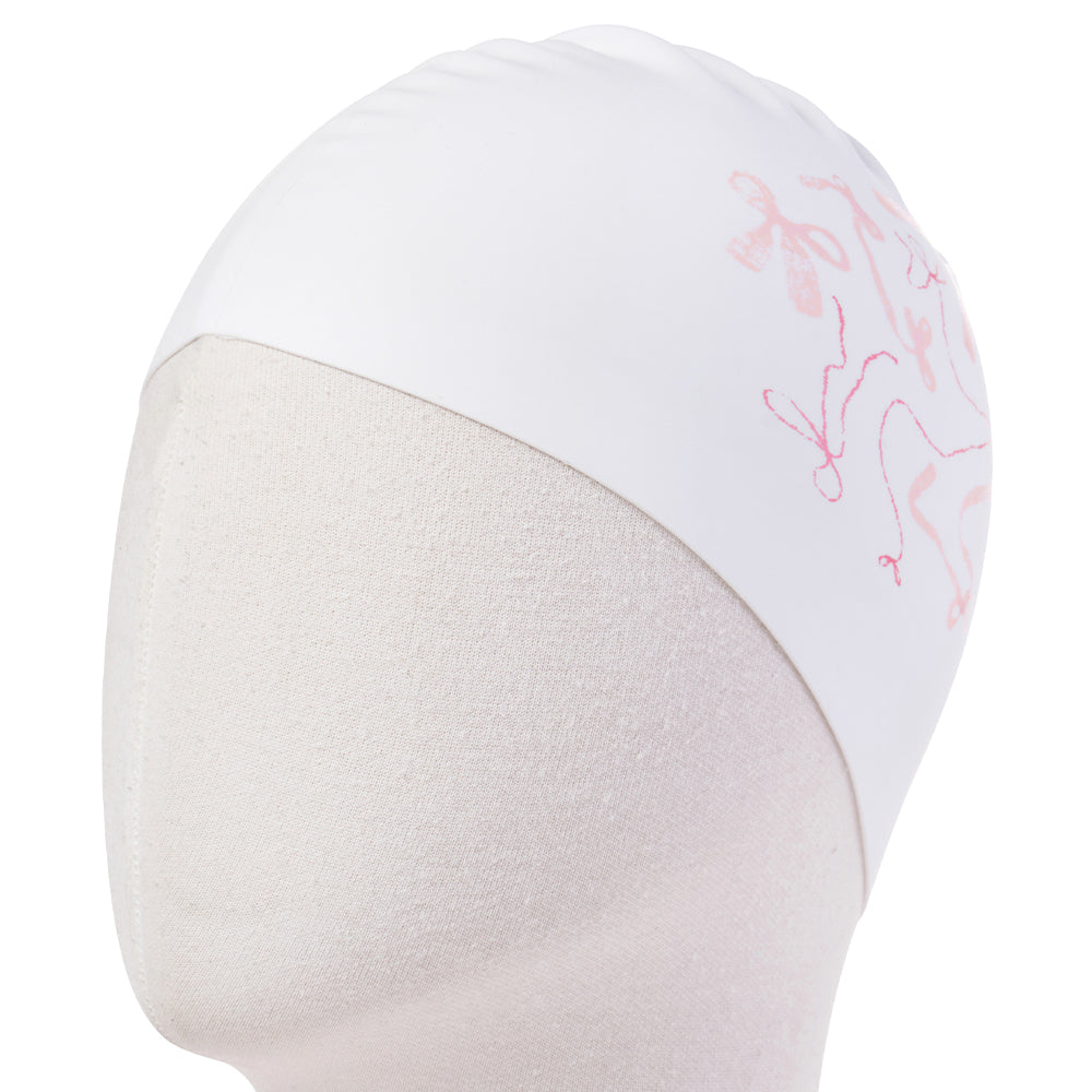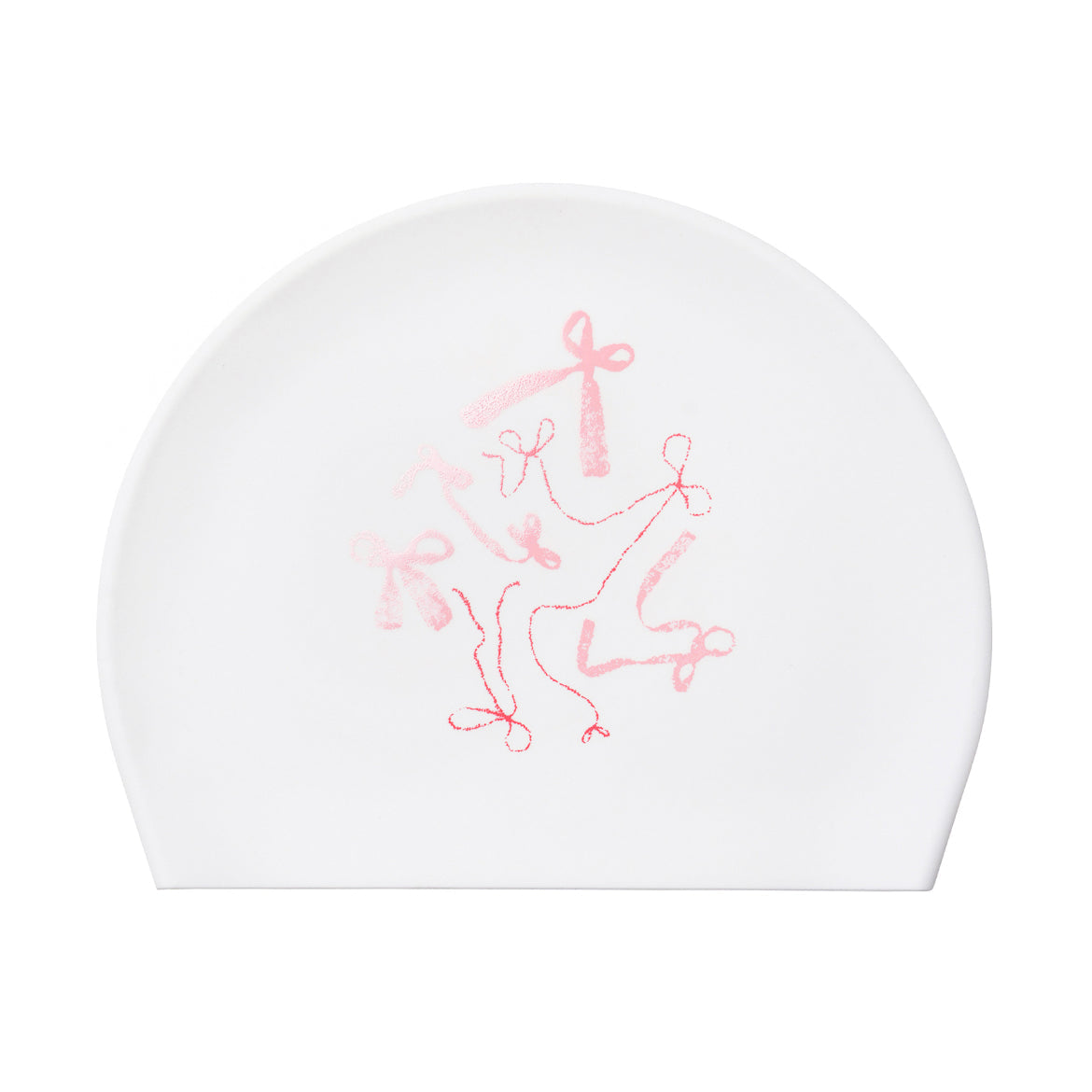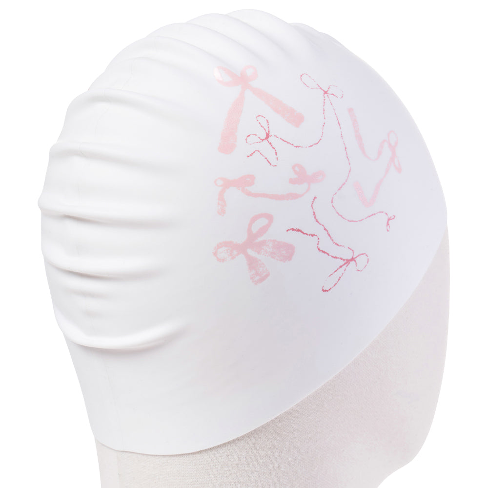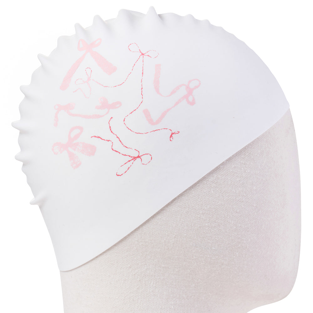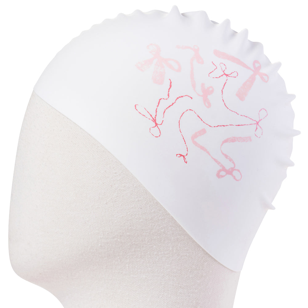 成人款粉色丝带印花硅胶泳帽