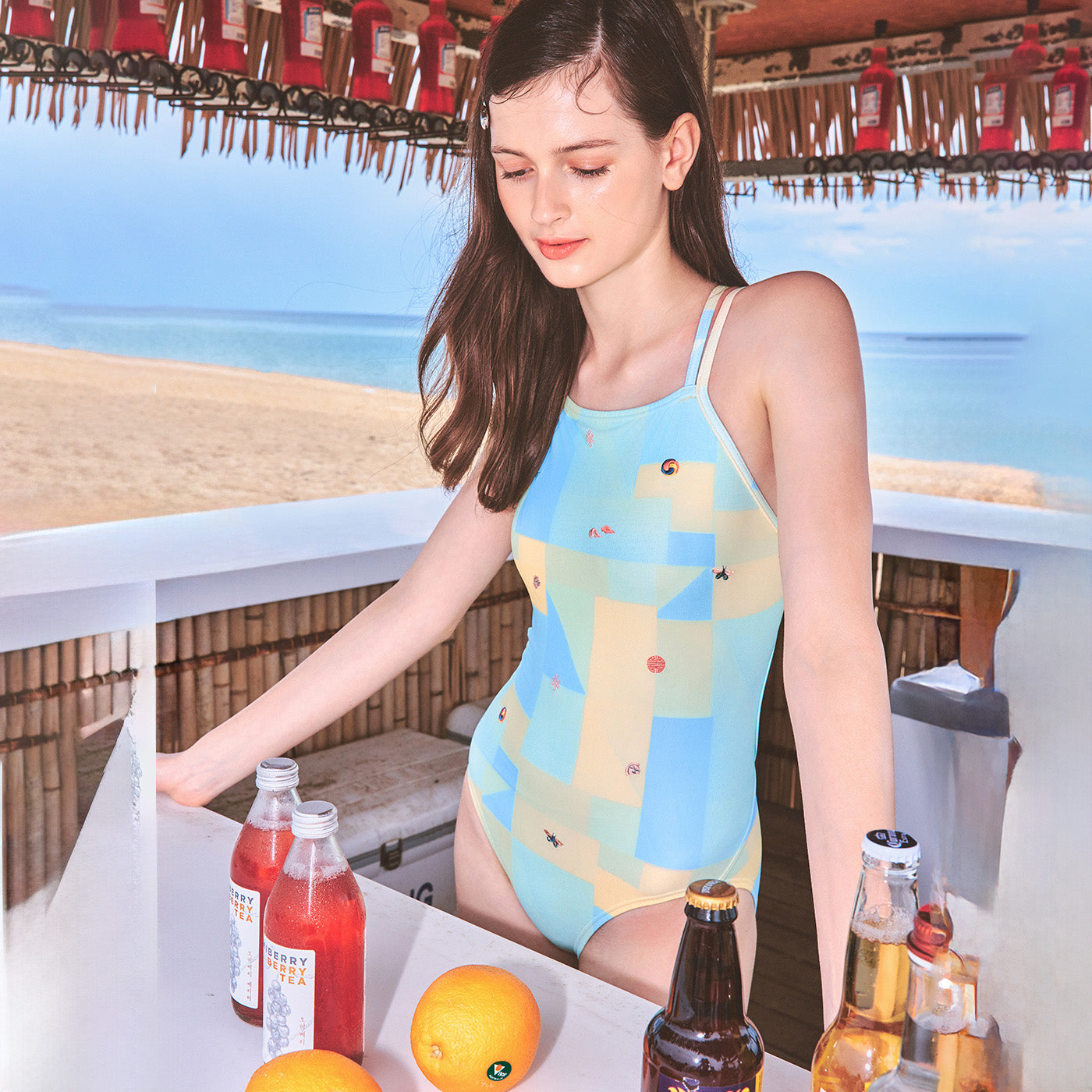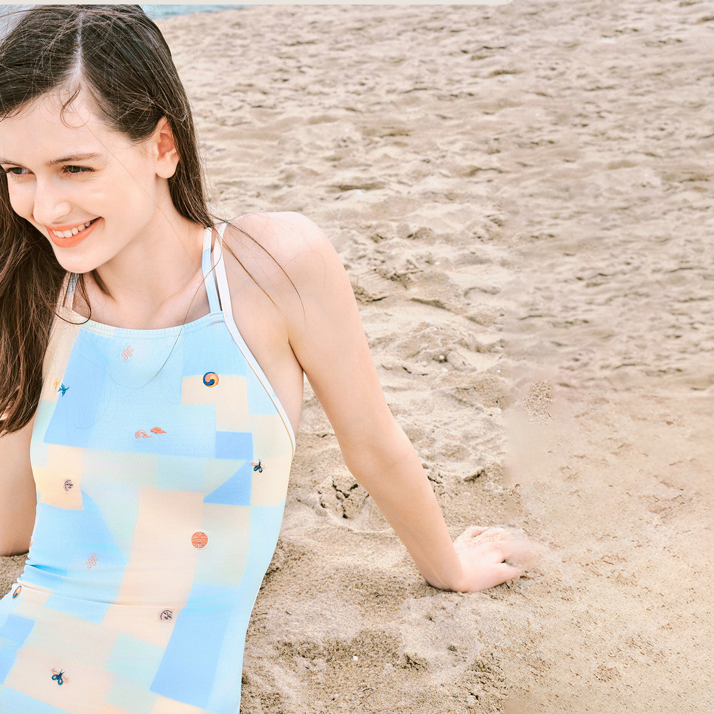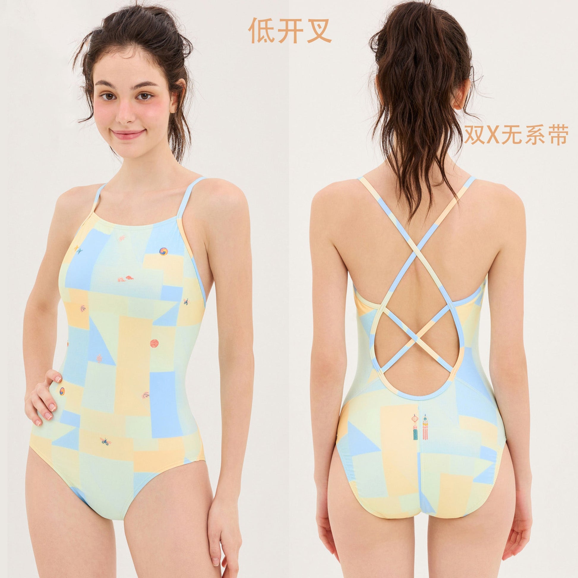 女士彩色印花专业泳衣