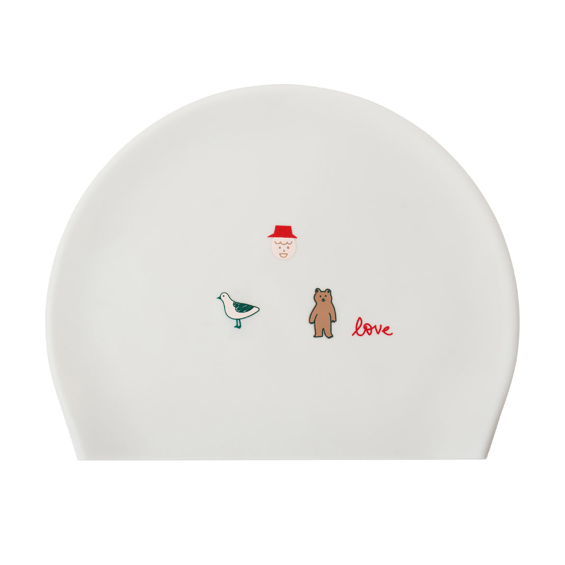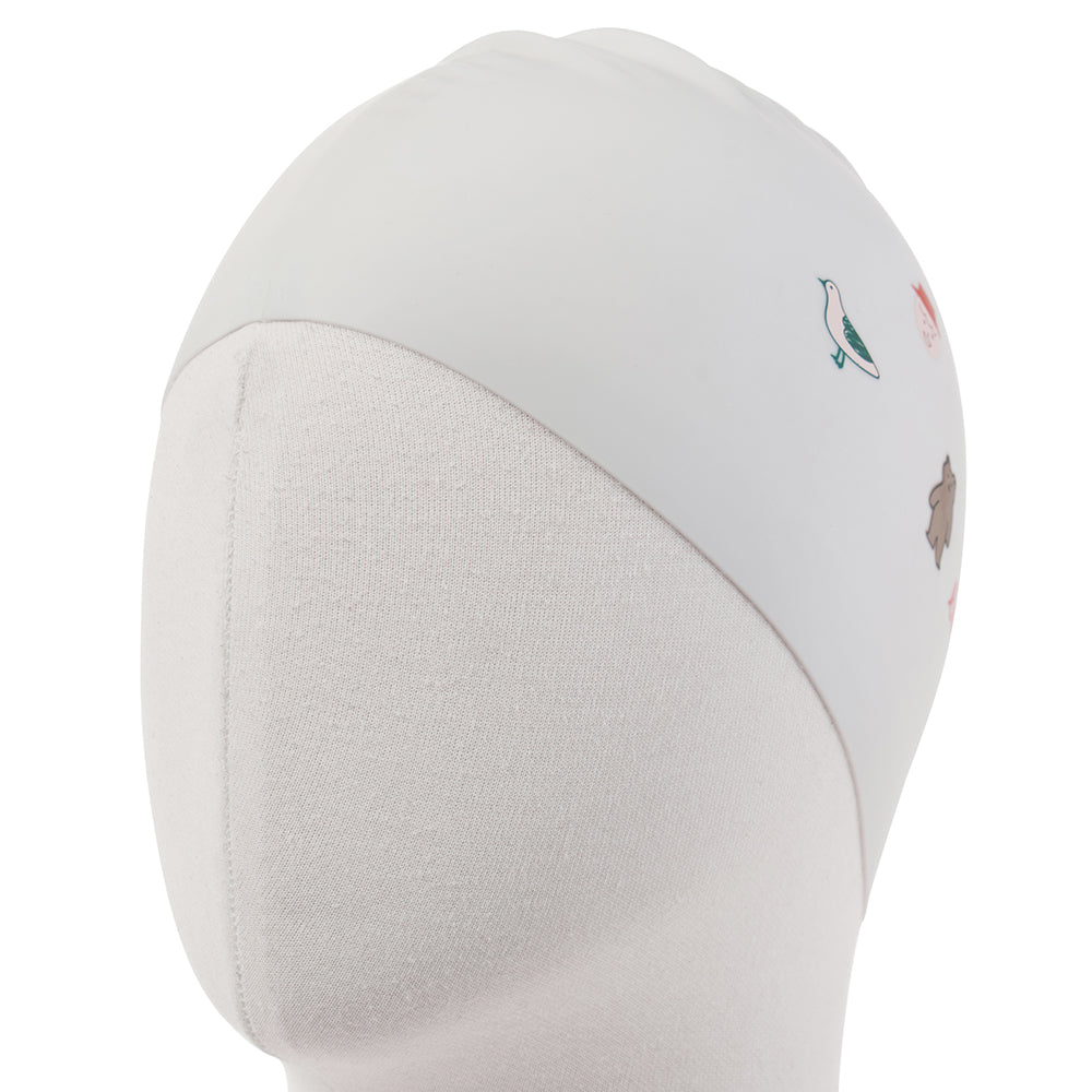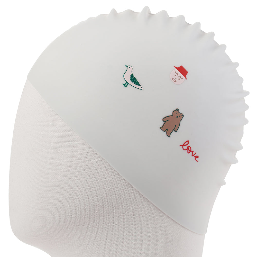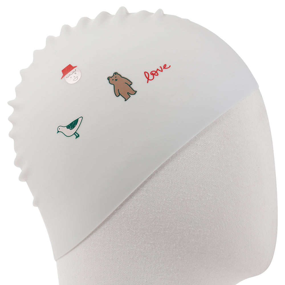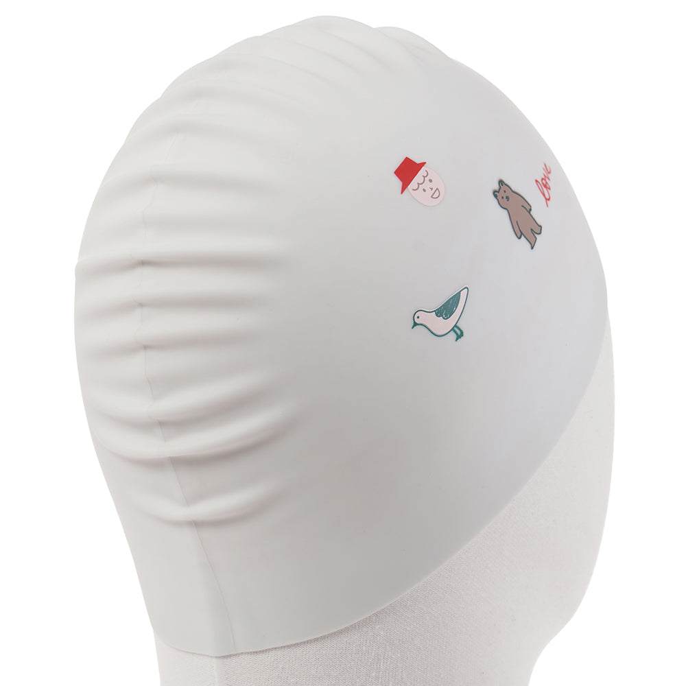 成人款白色小熊印花硅胶泳帽