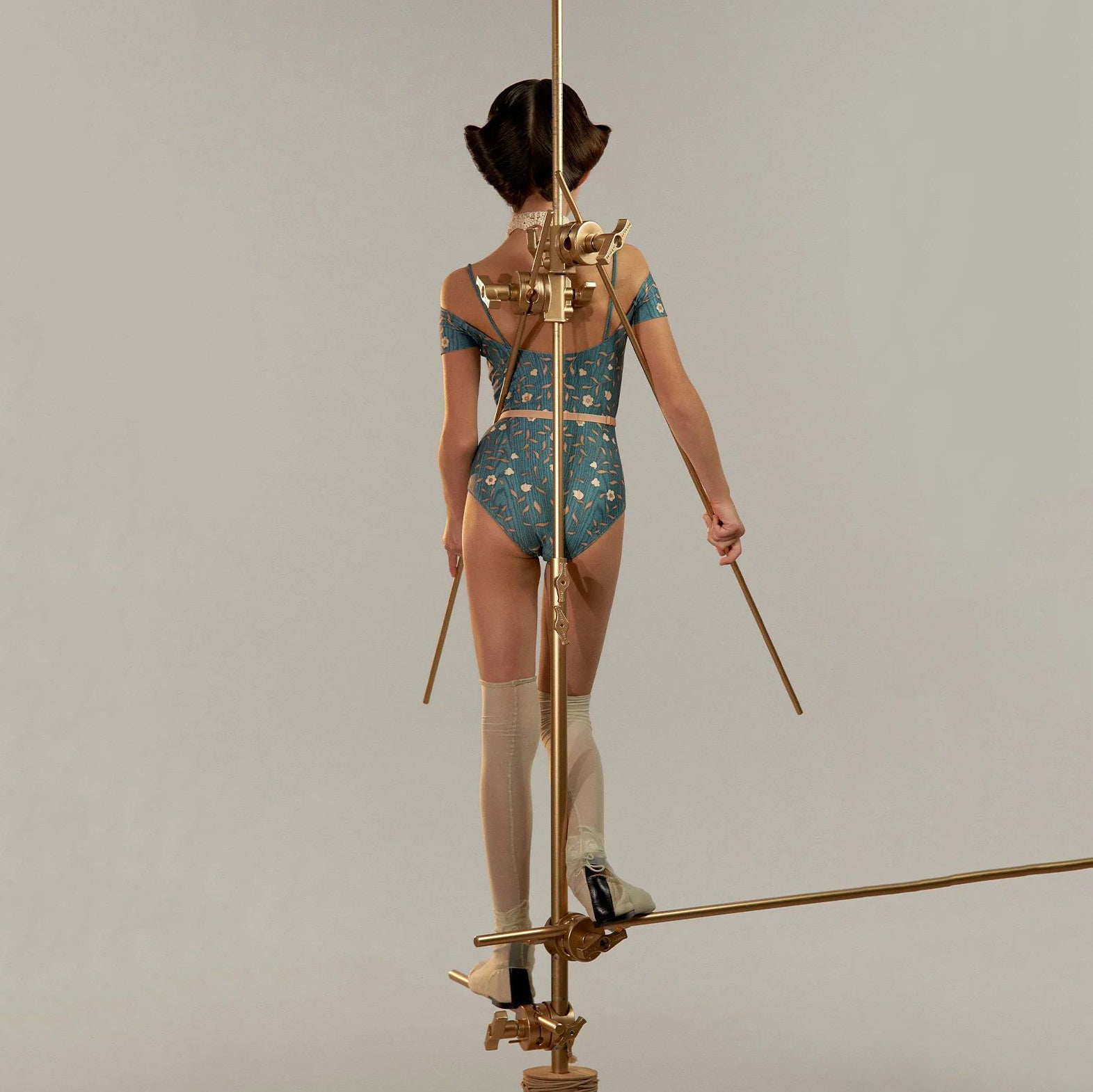 女童蓝色"ROSEWOOD INTARSIA"芭蕾舞连体衣(J251LE24VL/petrol)
