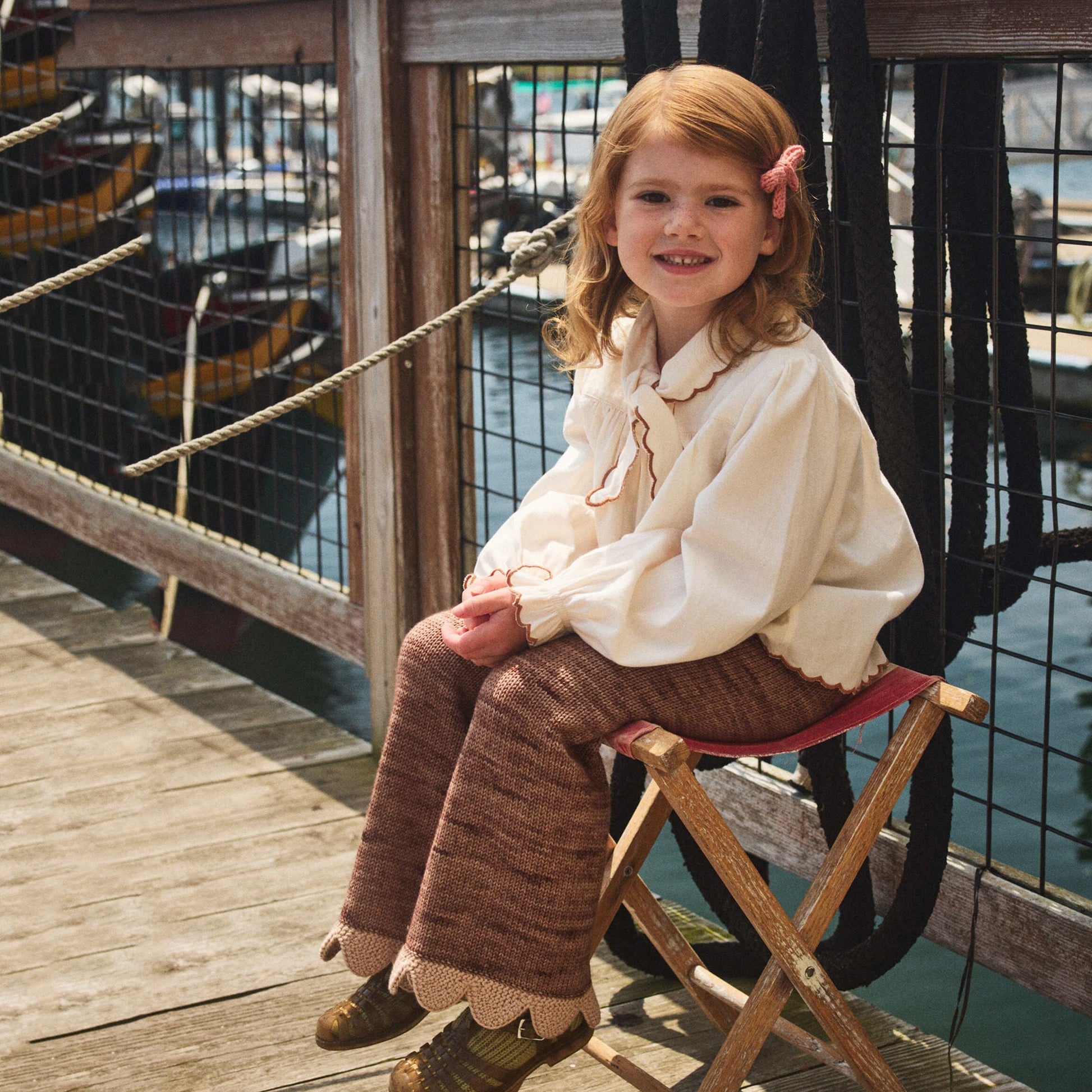 女童白色蝴蝶结棉衬衫