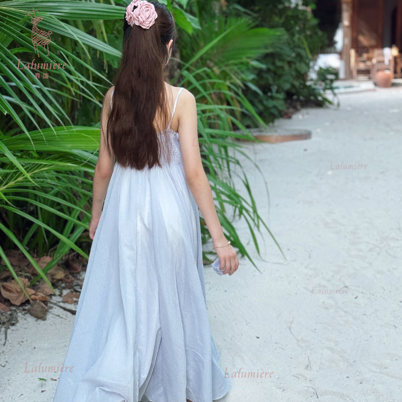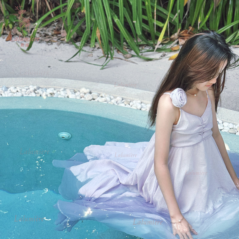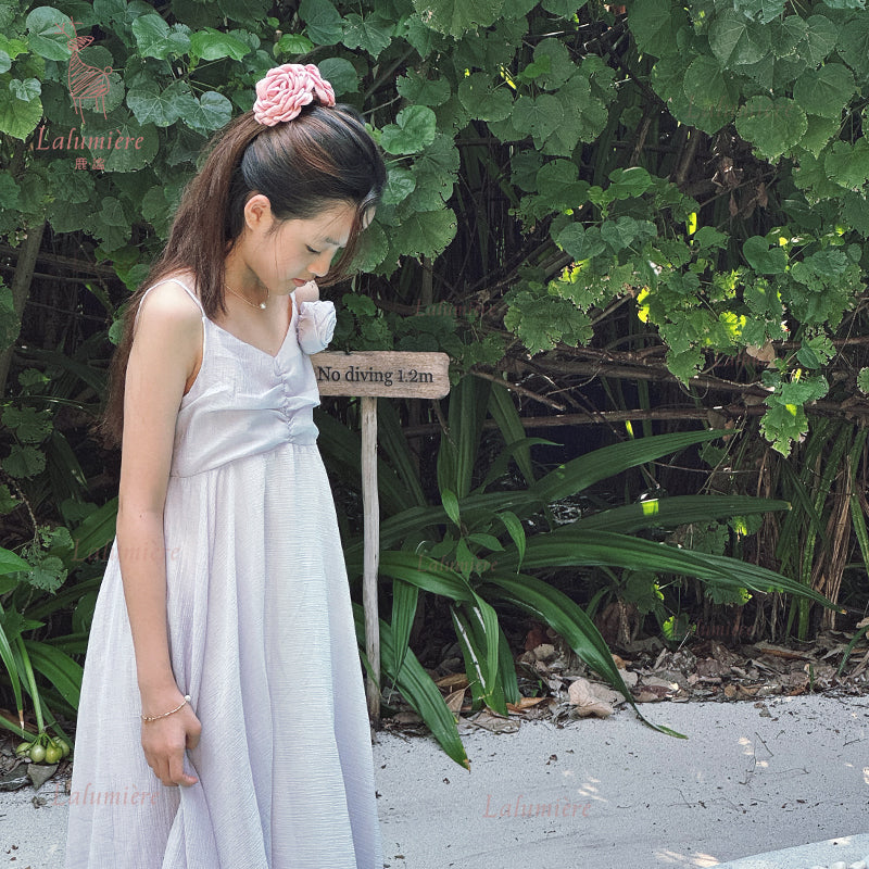 女童紫色可拆卸玫瑰花度假裙