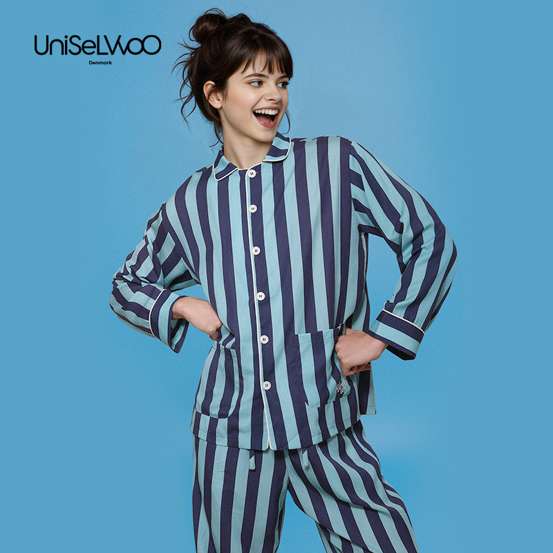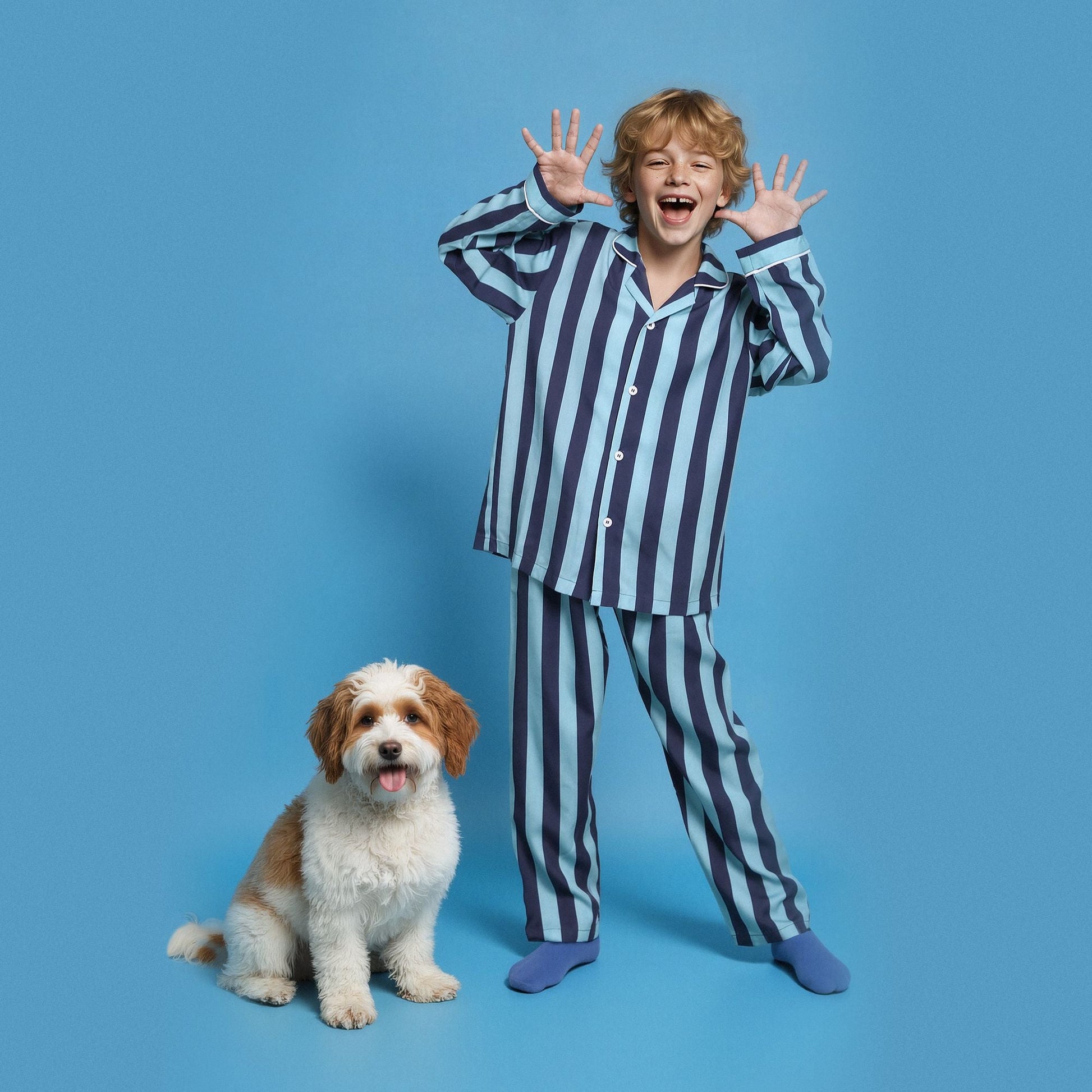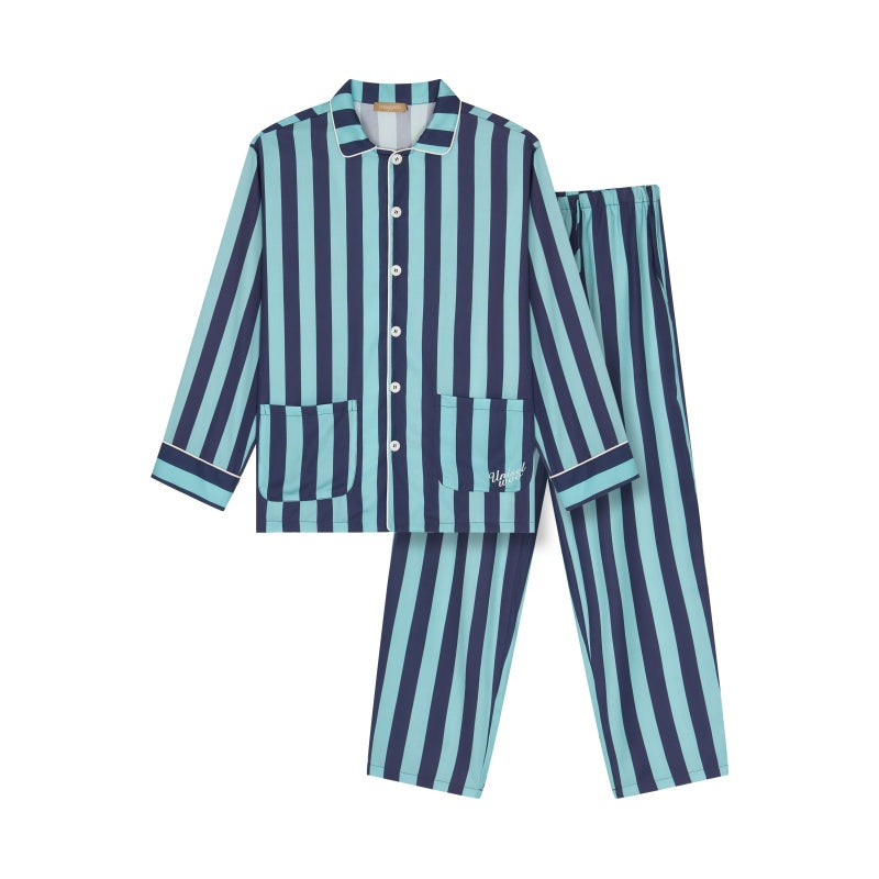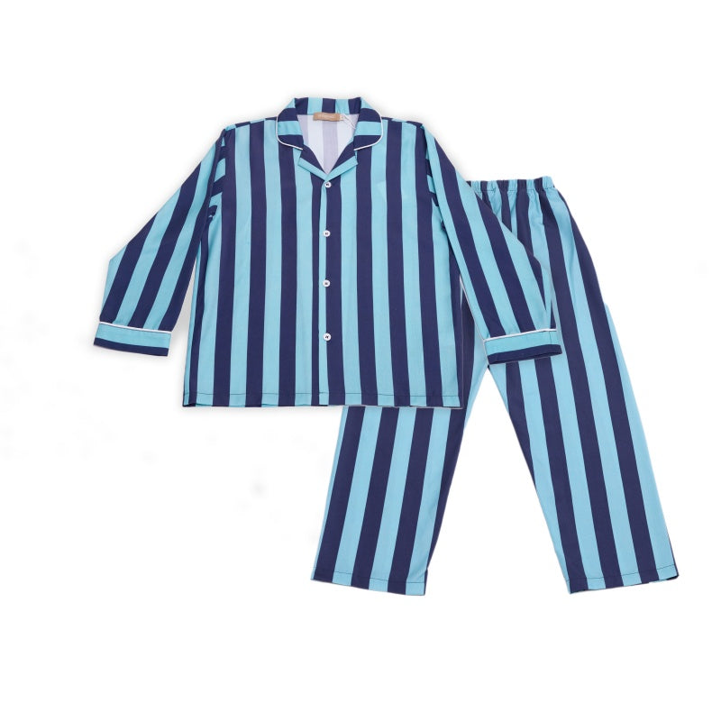 亲子款蓝色&藏青色条纹天丝睡衣套装