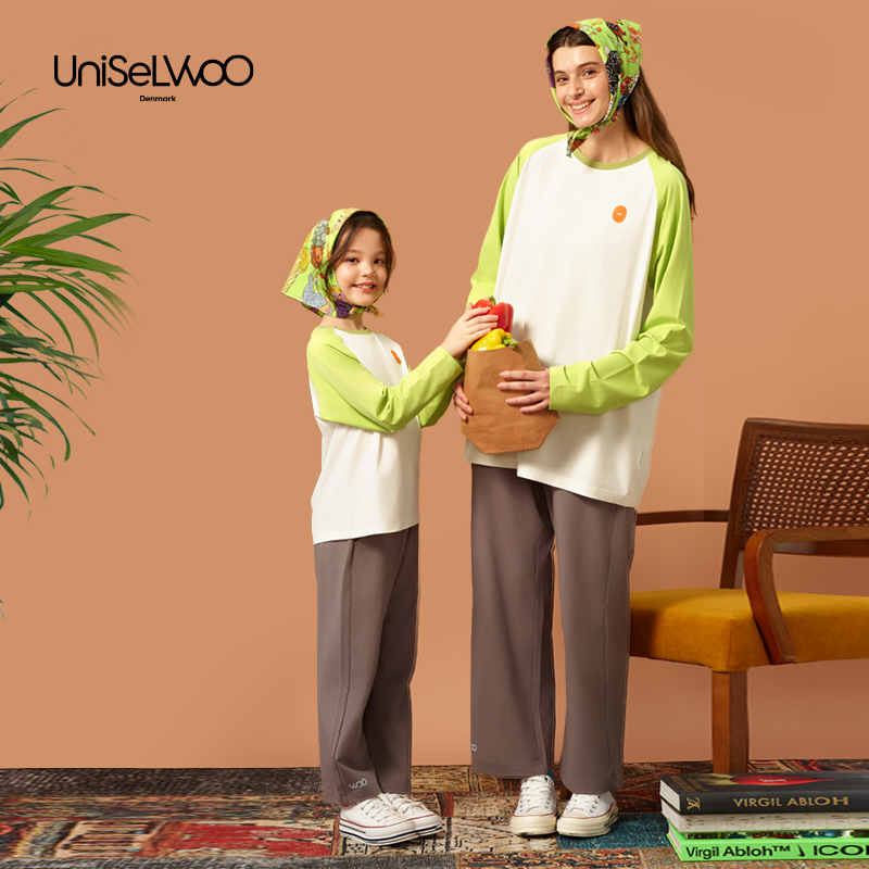 亲子款牛油果绿拼接色噗噗棉插肩长袖T恤