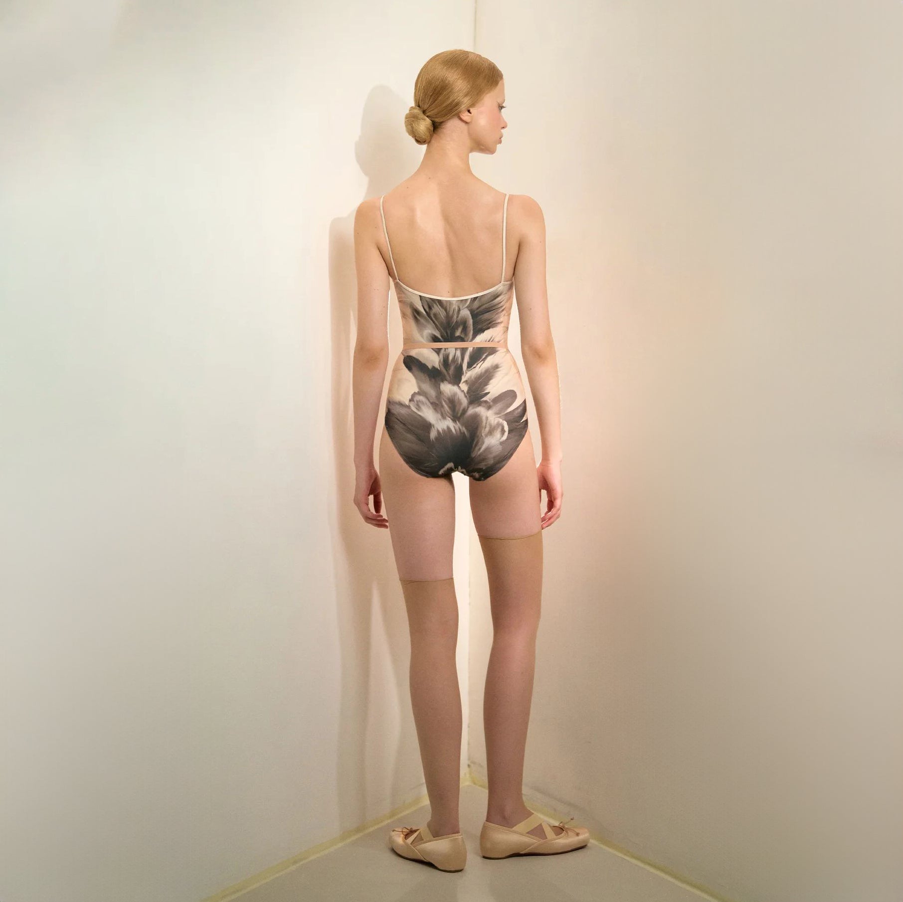 女士黑色"ODETTE/ODILE"羽毛印花芭蕾舞连体衣(253LE03VL/black & white)