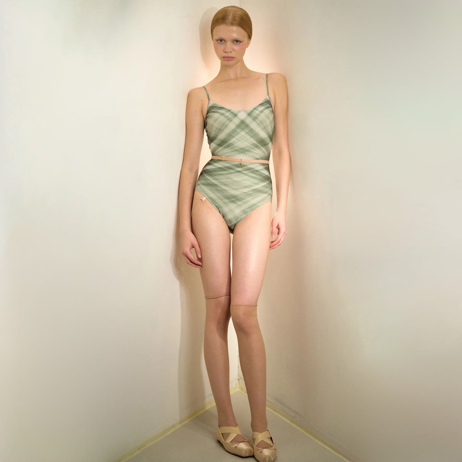 女士绿色格子"TULLE PLIÉ"芭蕾舞连体衣(253LE03VL/evergreen)