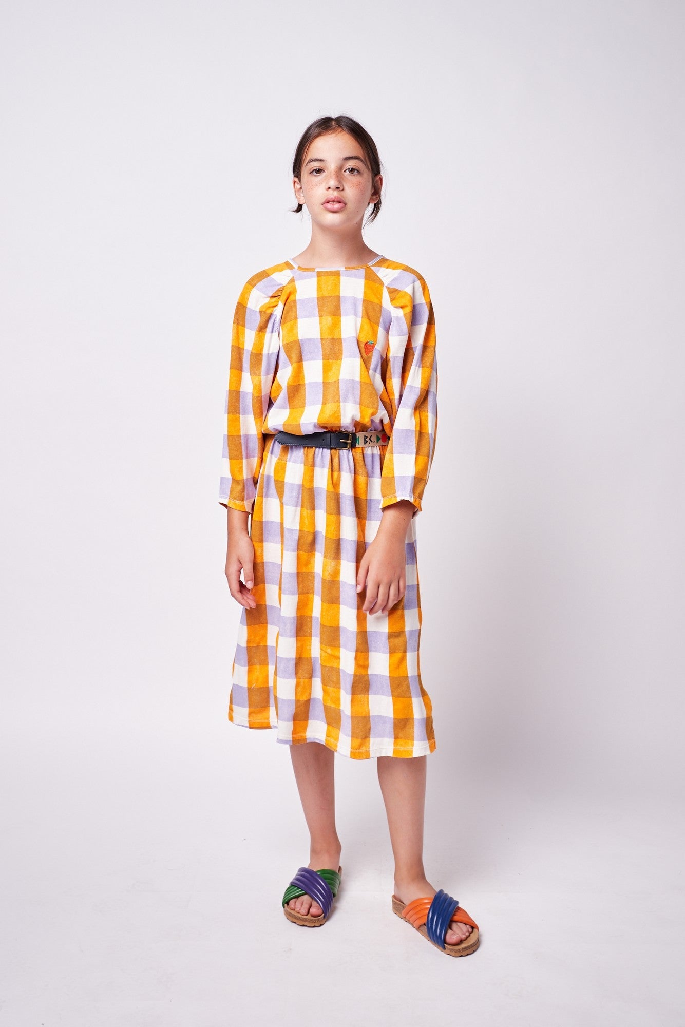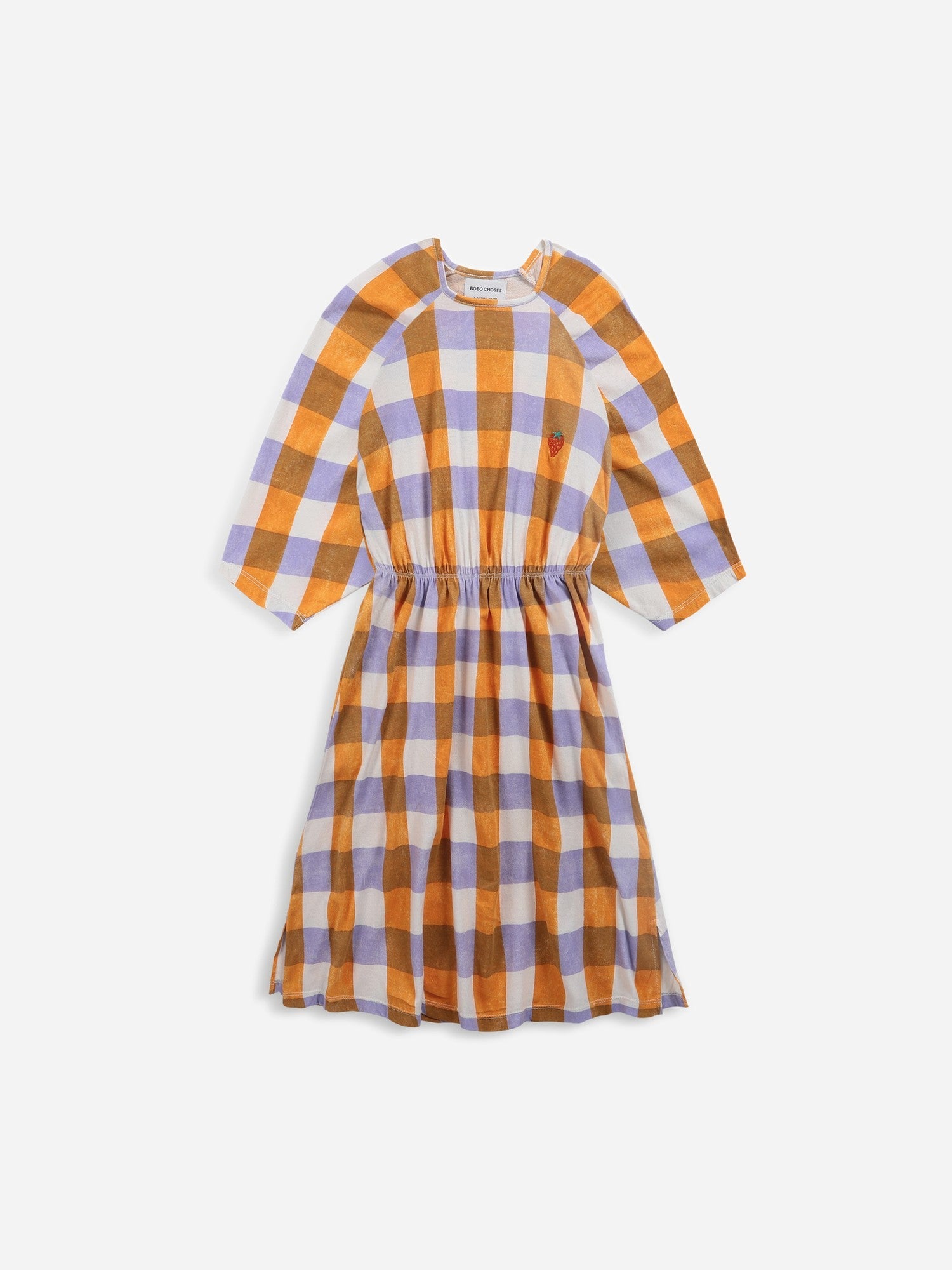 女童紫色格子棉连衣裙