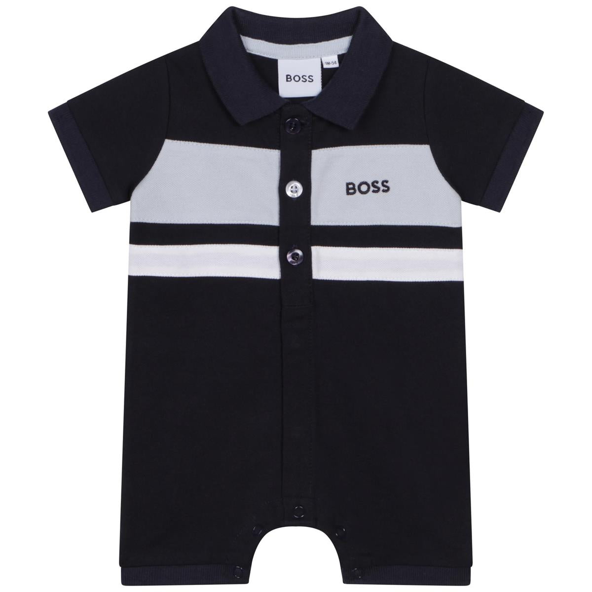 男婴藏青色Logo棉连体衣